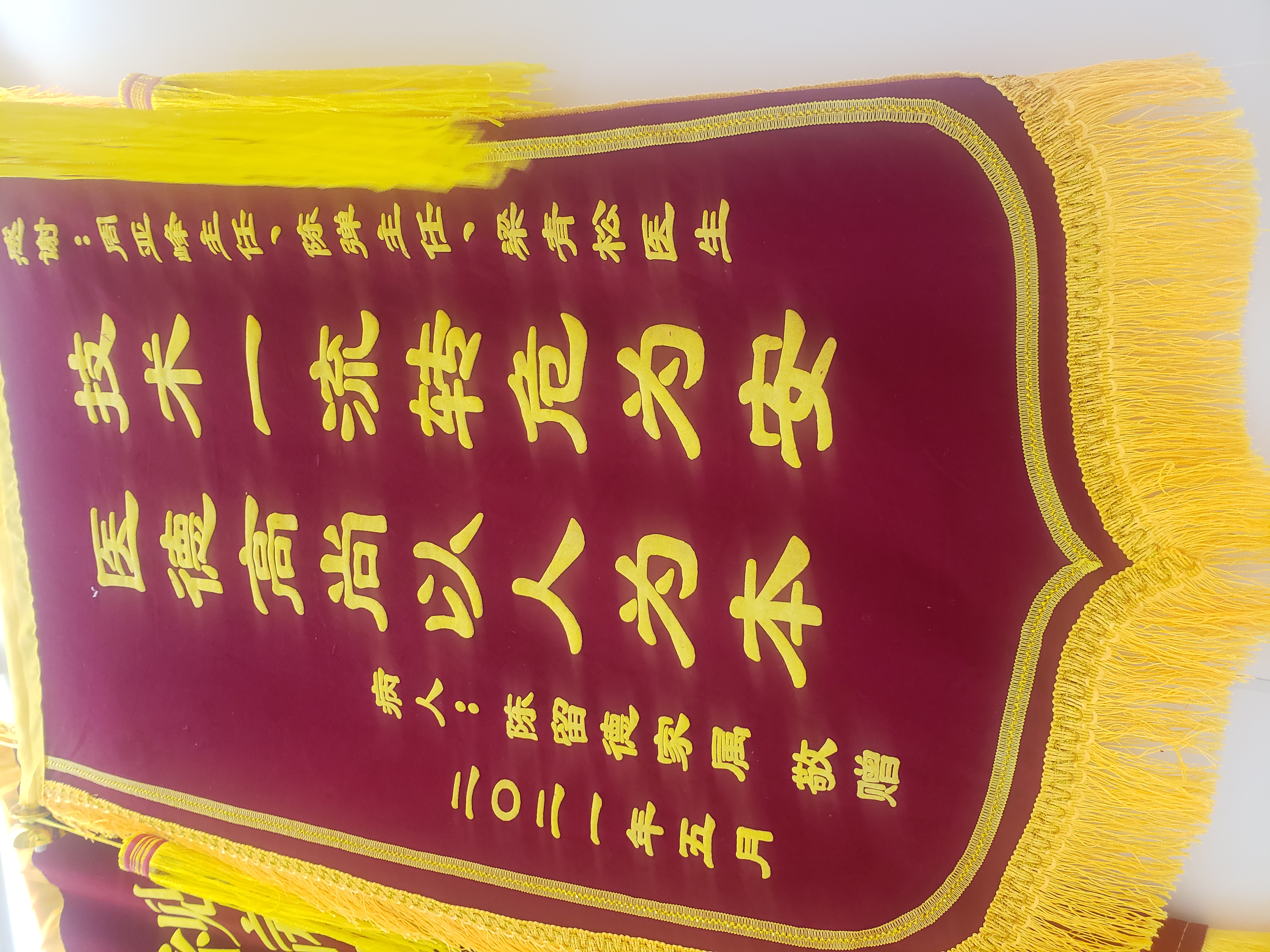 患者陈先生赠送锦旗感谢我院周亚峰副院长、心血管内科陈弹主任医师、梁青松医生