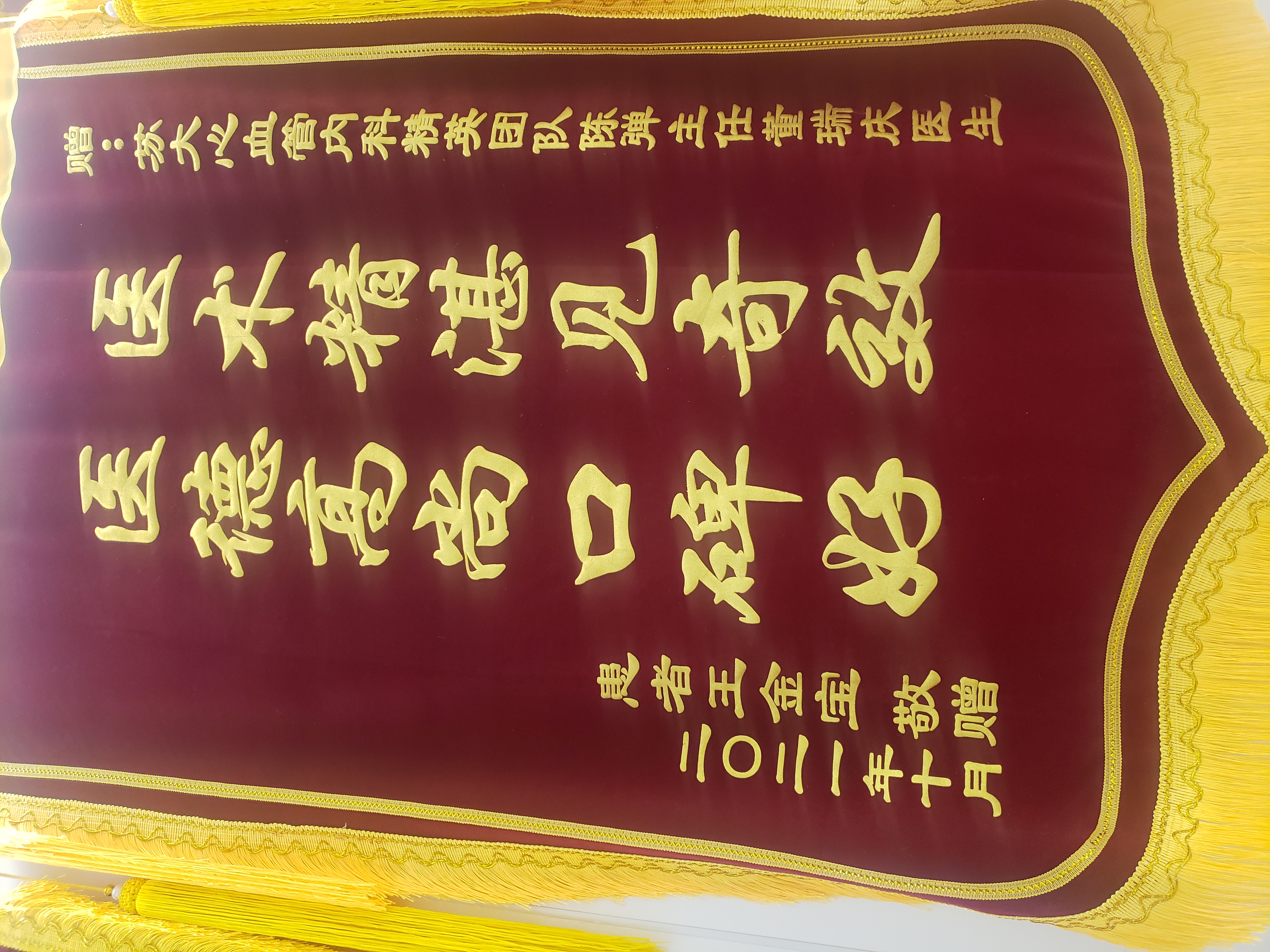 患者王先生赠送锦旗感谢我院心内科陈弹主任医师、董瑞庆医生