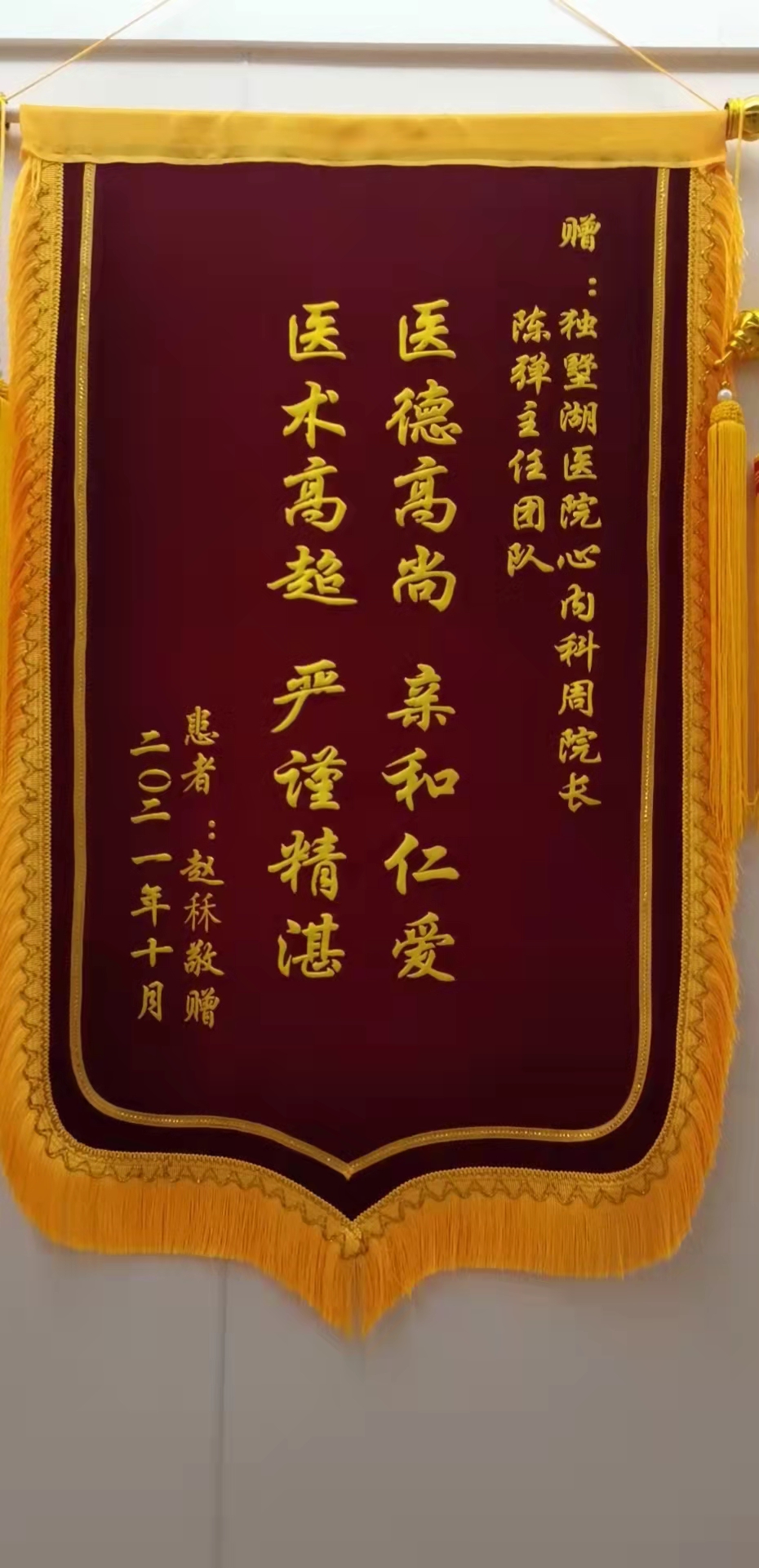 患者赵先生赠送锦旗感谢我院周亚峰副院长、心血管内科陈弹主任医师团队