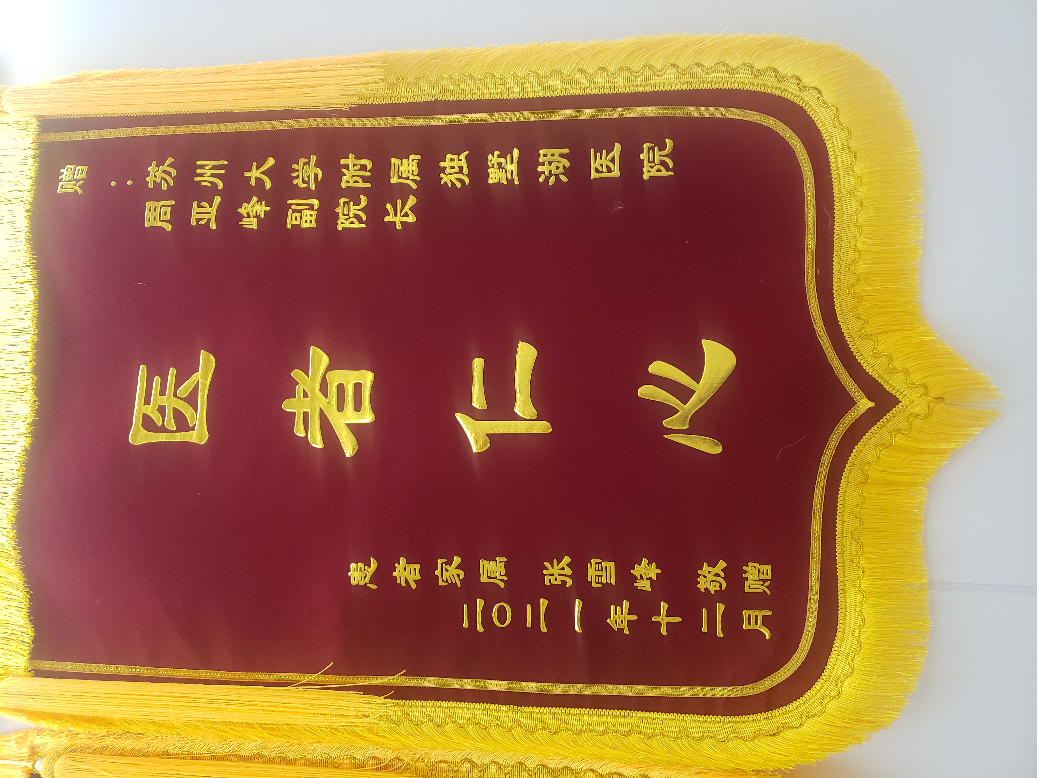 患者张先生赠送锦旗感谢我院周亚峰副院长