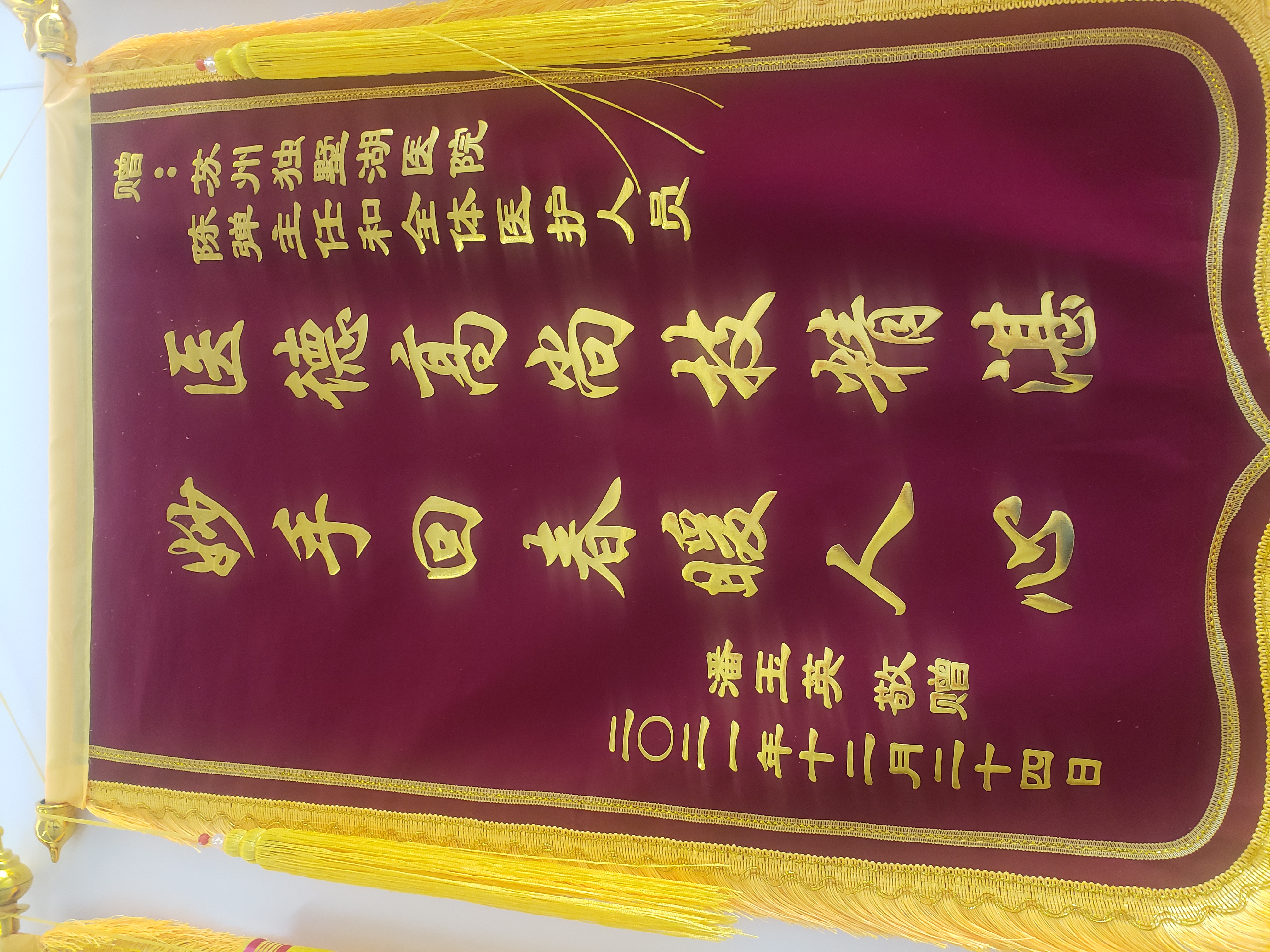 患者潘女士赠送锦旗感谢我院心内科陈弹主任医师和全体医护人员