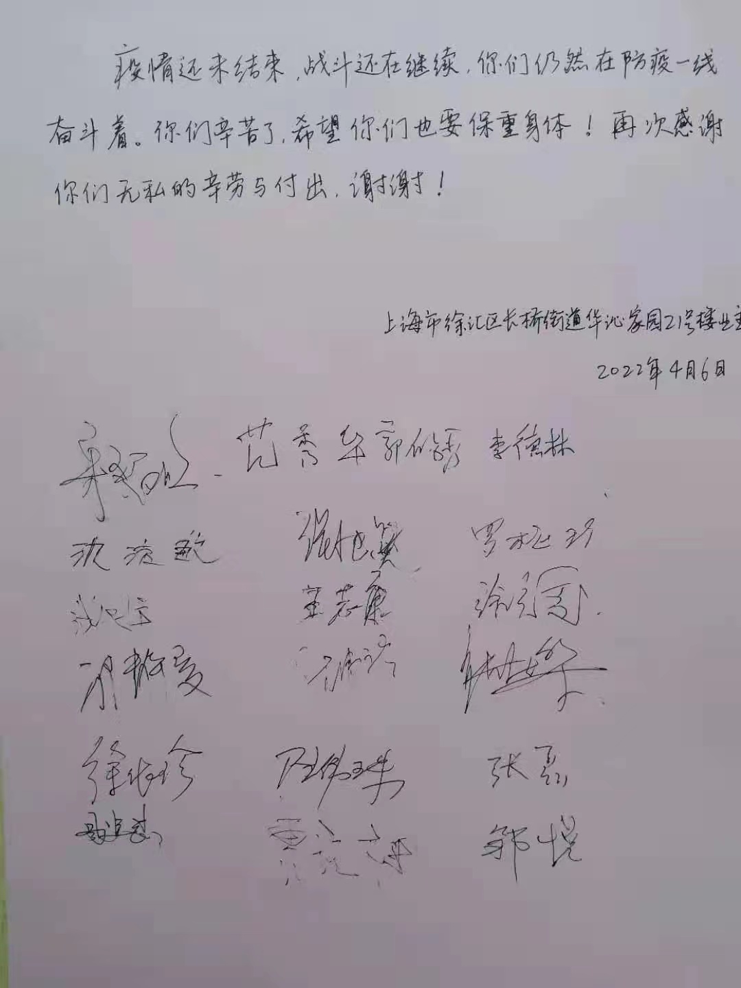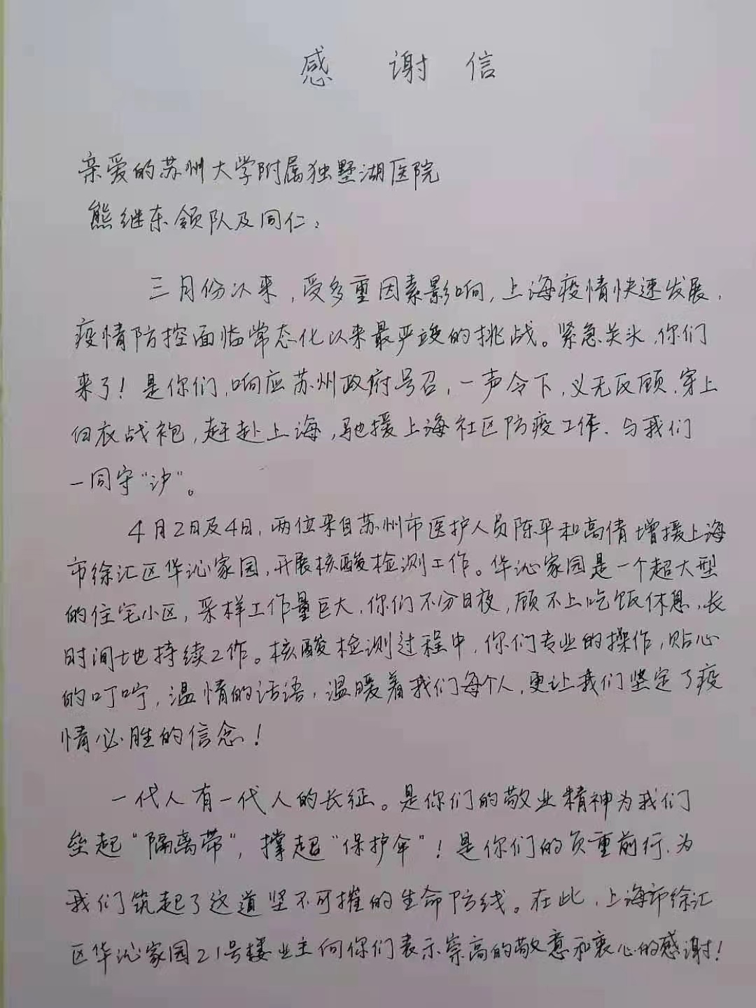 上海徐汇区长桥街道居民致我院“援沪”医疗队的感谢信