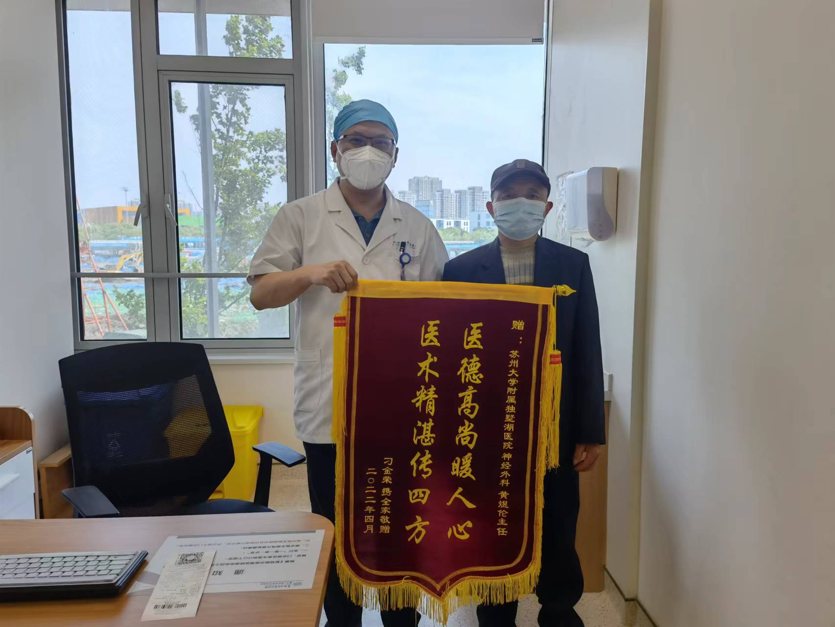 患者刁先生赠送锦旗感谢我院神经外科黄煜伦主任