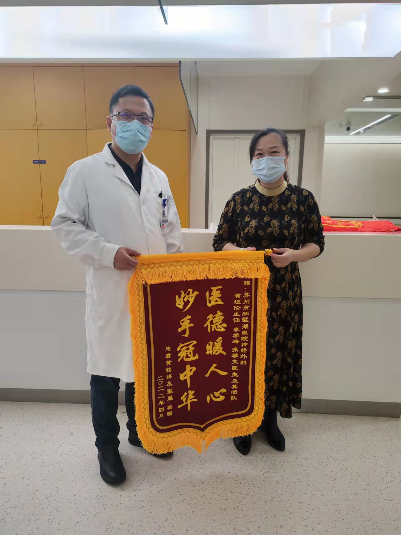 患者黄女士赠送锦旗感谢我院神经外科黄煜伦主任、李学涛、张学文医生团队
