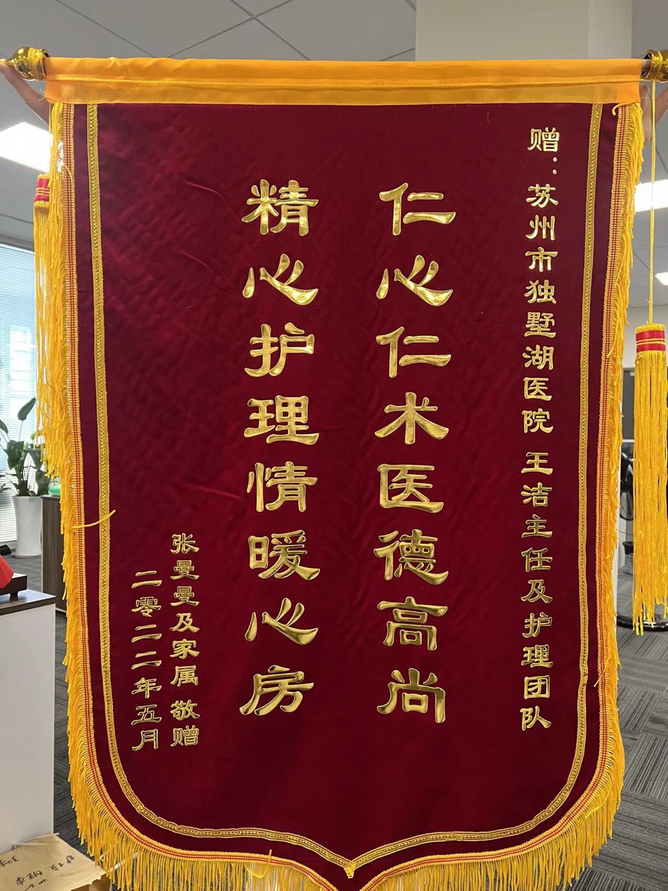 患者张女士赠送锦旗感谢我院王洁主任及护理团队