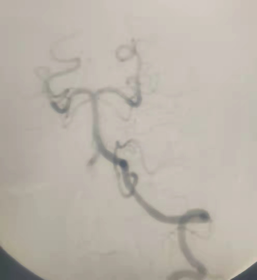 患者为一位中年男性,突发头痛1天,医务人员快速评估病情后紧急完善头颅CT,提示双侧脑室内出血。院党委书记、院长侯建全,副院长郭强高度重视,为保证次密接患者的生命安全,请神经外科紧急会诊。会诊建议完善头颈CTA,排查脑血管相关疾病,并于发热门诊再次完善头颈CTA检查,结果提示颅内大血管未见明显异常,小血管显影欠佳。结果汇报神经外科黄煜伦主任,黄主任仔细阅片后认为患者有高血压病史,虽然头颈CTA结果阴性,年龄较轻,不排除颅内微小动脉瘤、血管畸形、烟雾病等相关脑血管病,若再次破裂出血可能危及生命,建议完善目前脑血管检查的黄金标准——脑血管造影。黄煜伦主任立即汇报相关事宜,得到了院领导的大力支持。