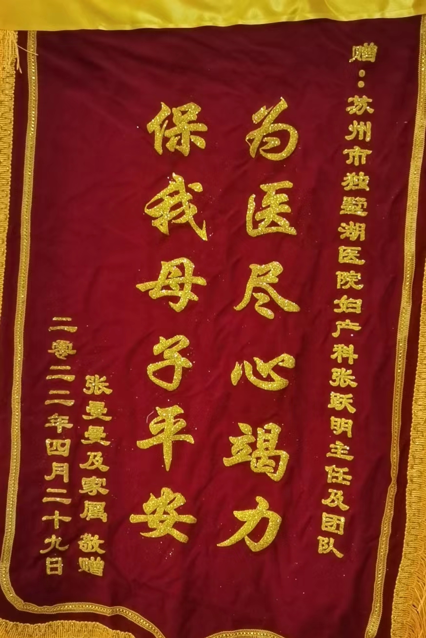 患者张女士赠送锦旗感谢我院妇产科张跃明主任及团队
