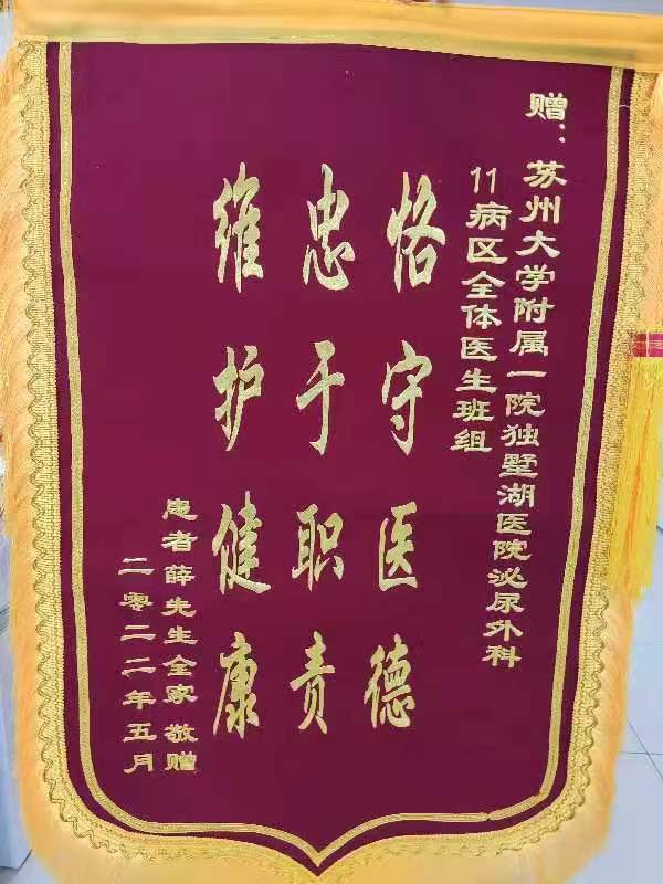 患者薛先生赠送锦旗感谢我院泌尿外科全体医护