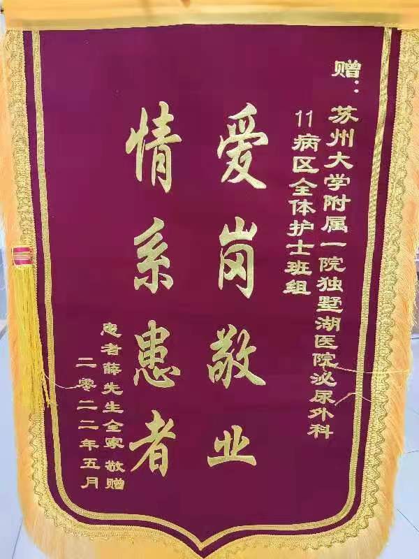 患者薛先生赠送锦旗感谢我院泌尿外科全体护理团队