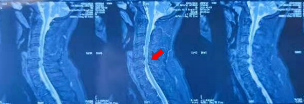 C5/6、C6/7椎间盘突出明显,椎管狭窄,脊髓受压严重