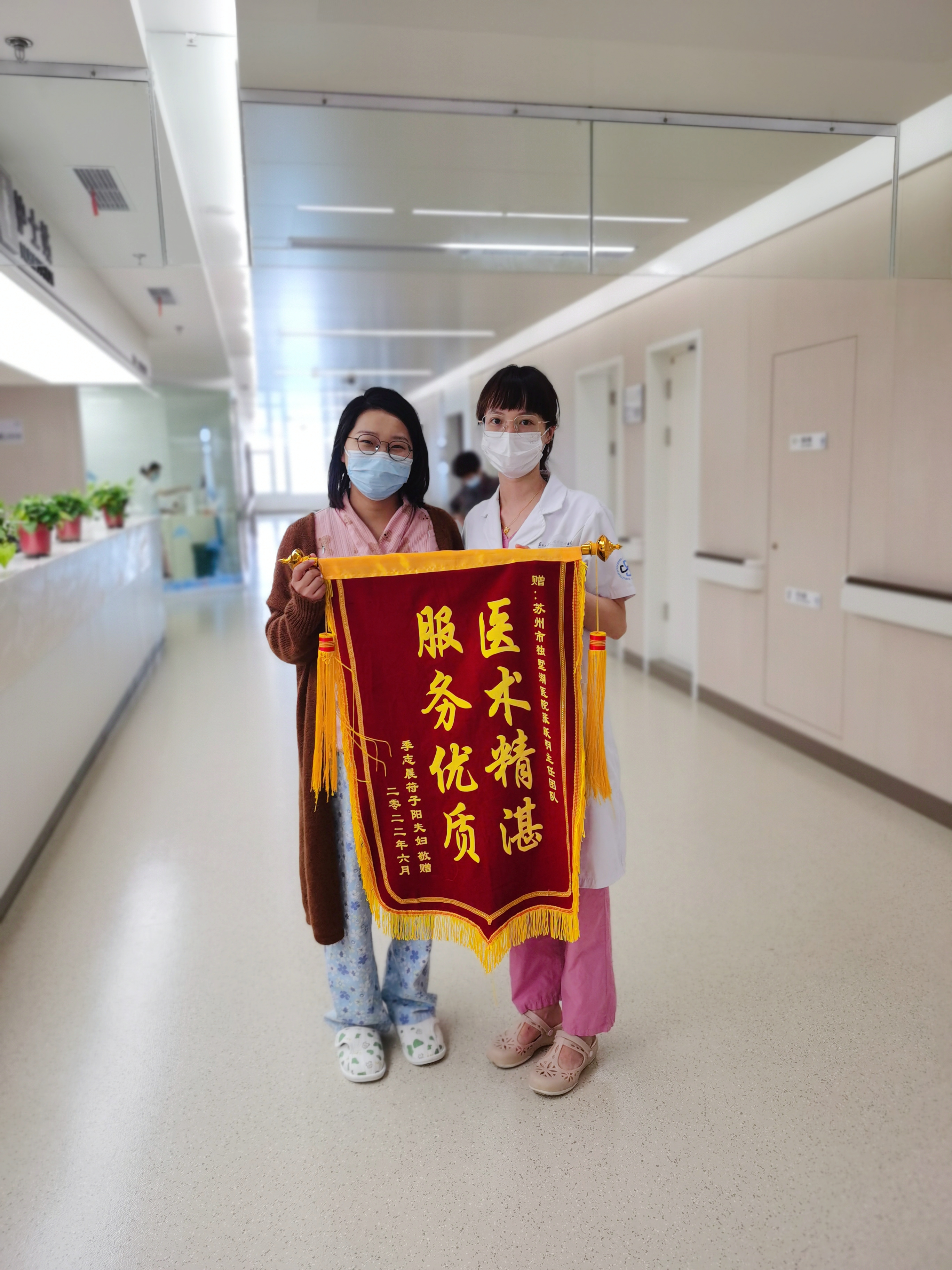 患者季、符夫妇赠锦旗感谢我院张跃明主任团队