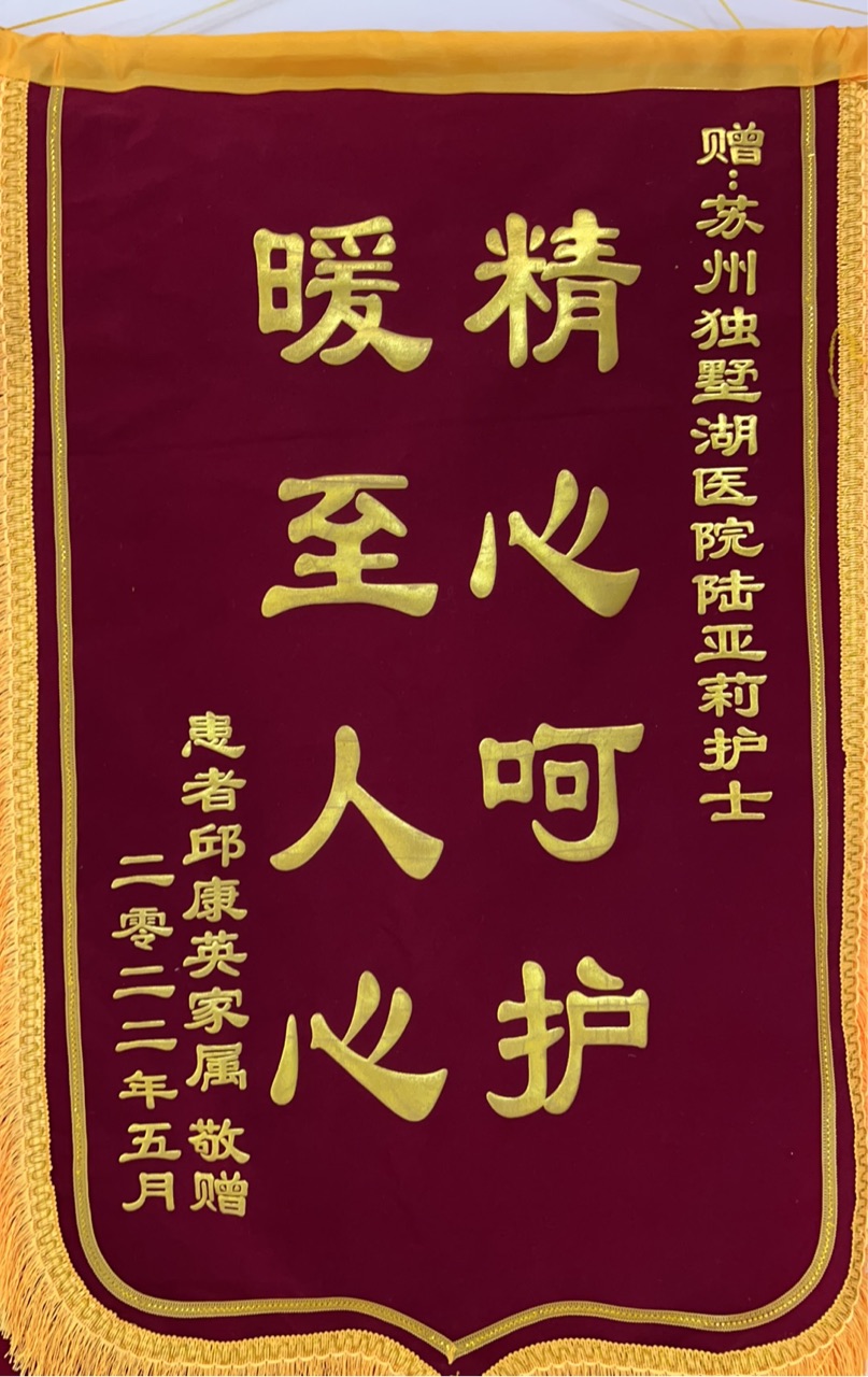 患者邱女士赠送锦旗感谢我院陆亚莉护士