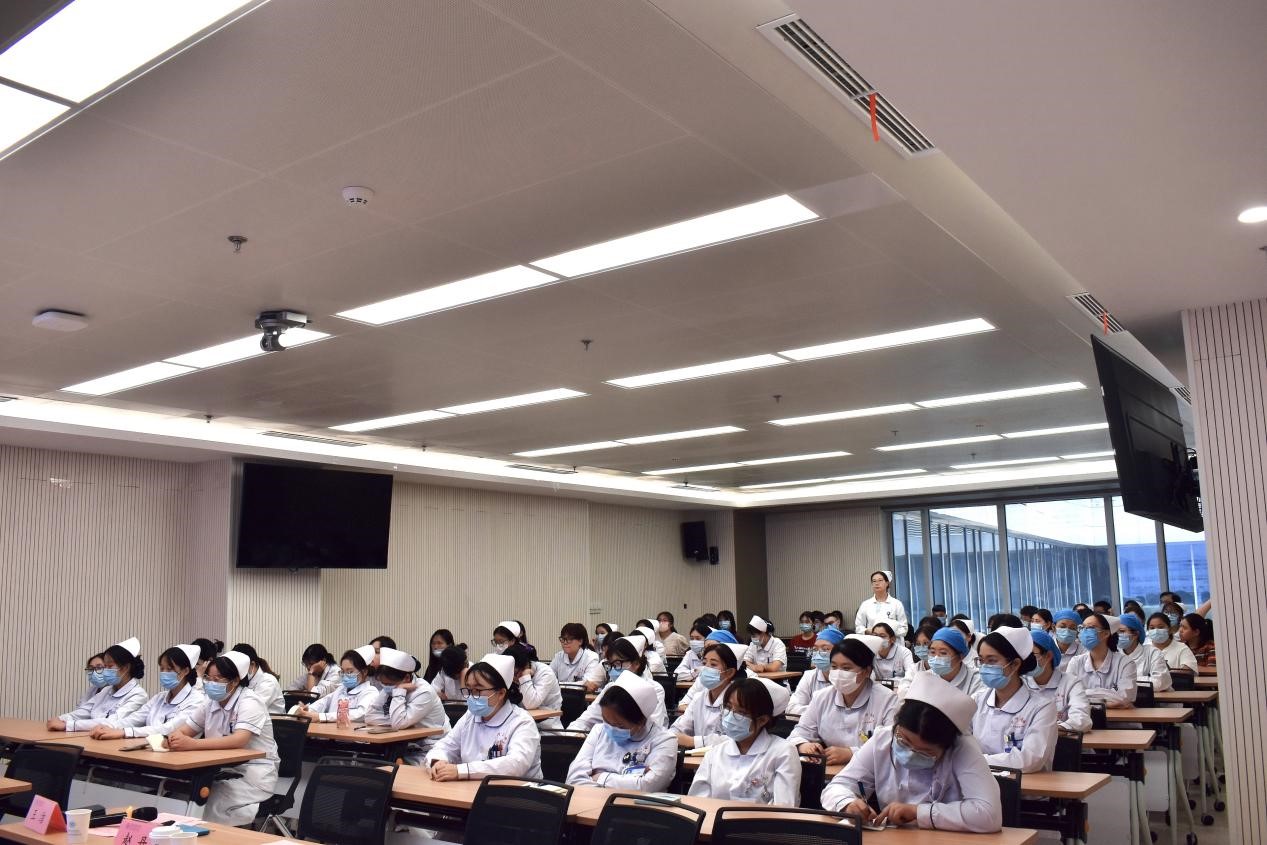 护理部赵丹护士长讲授了八大护理核心制度和实习护生安全管理要求。明确了护生的基本素质、权利与义务等,结合多年临床工作及带教经验细述了临床护生管理中的注意事项、实习过程中可能面临的问题及其解决方法。良好的护患沟通有助于了解患者身心状况,沈梅芬科护士长以《护患沟通技巧》为题,从真实案例入手,充分展现了临床的多面性以及护理工作的细腻,护生们纷纷表示受益匪浅。