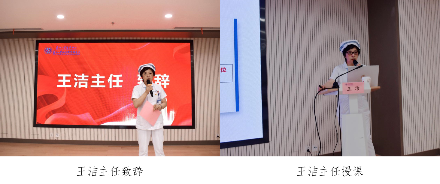 护理部王洁主任代表护理部对实习生的到来表示欢迎。她在致辞中表示,护理是以人为本,始于患者之需求、止于患者之满足的一门独立性学科,临床实习是护生实现理论知识向实践能力转化的第一步。她强调,要服从轮转科室的教学管理和实习安排,慎独敬业,保证临床护理工作安全。希望同学们在实习期间认真完成各项学习任务,为今后的护理职业生涯打下坚实的基础。祝愿所有护生学有所成,成为一名技术精湛、有抱负、有担当、有作为的新时代护理人!