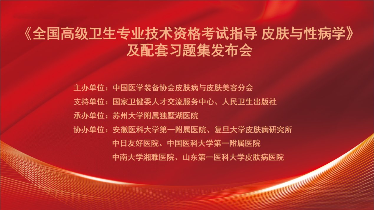 2022年6月29日,由中国医学装备协会皮肤病与皮肤美容分会主办、苏州市独墅湖医院(苏州大学附属独墅湖医院)承办的《全国高级卫生专业技术资格考试指导 皮肤与性病学》及配套习题集发布会在我院举行。本次发布会采用线上、线下结合的方式,参会人数共计3万余人。
