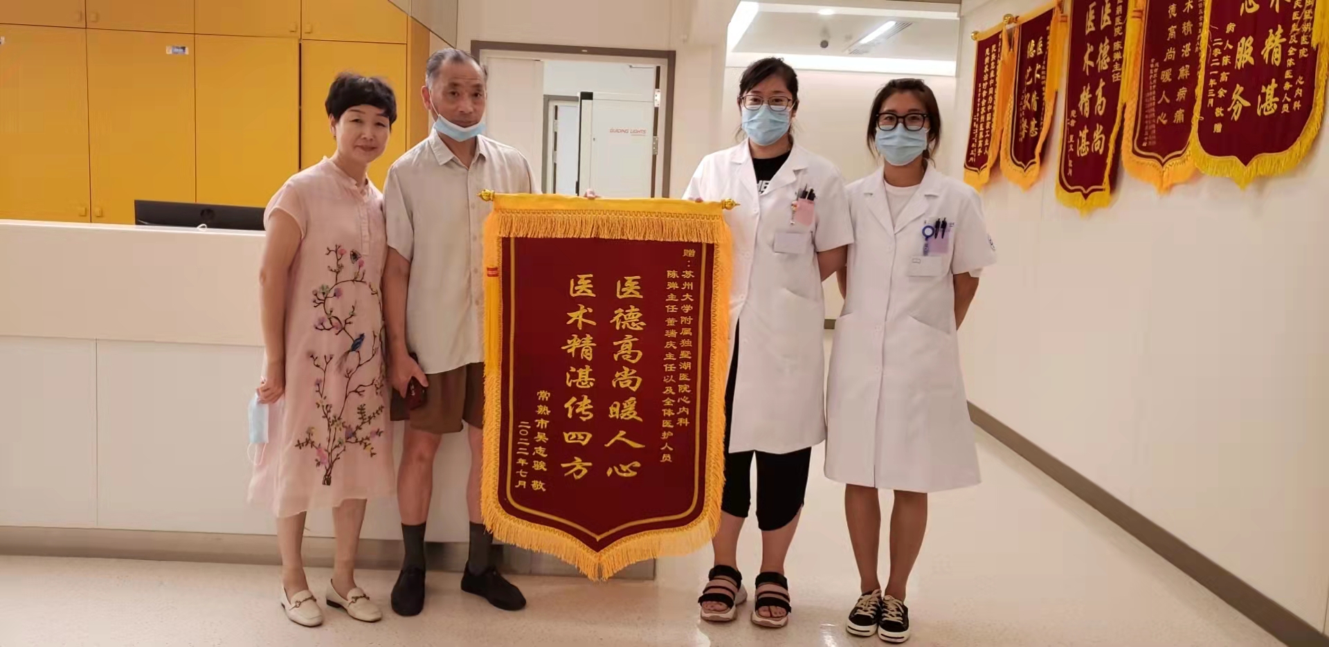 患者吴先生及家属赠送锦旗感谢我院心内科陈弹主任、董瑞庆医生及全体医护