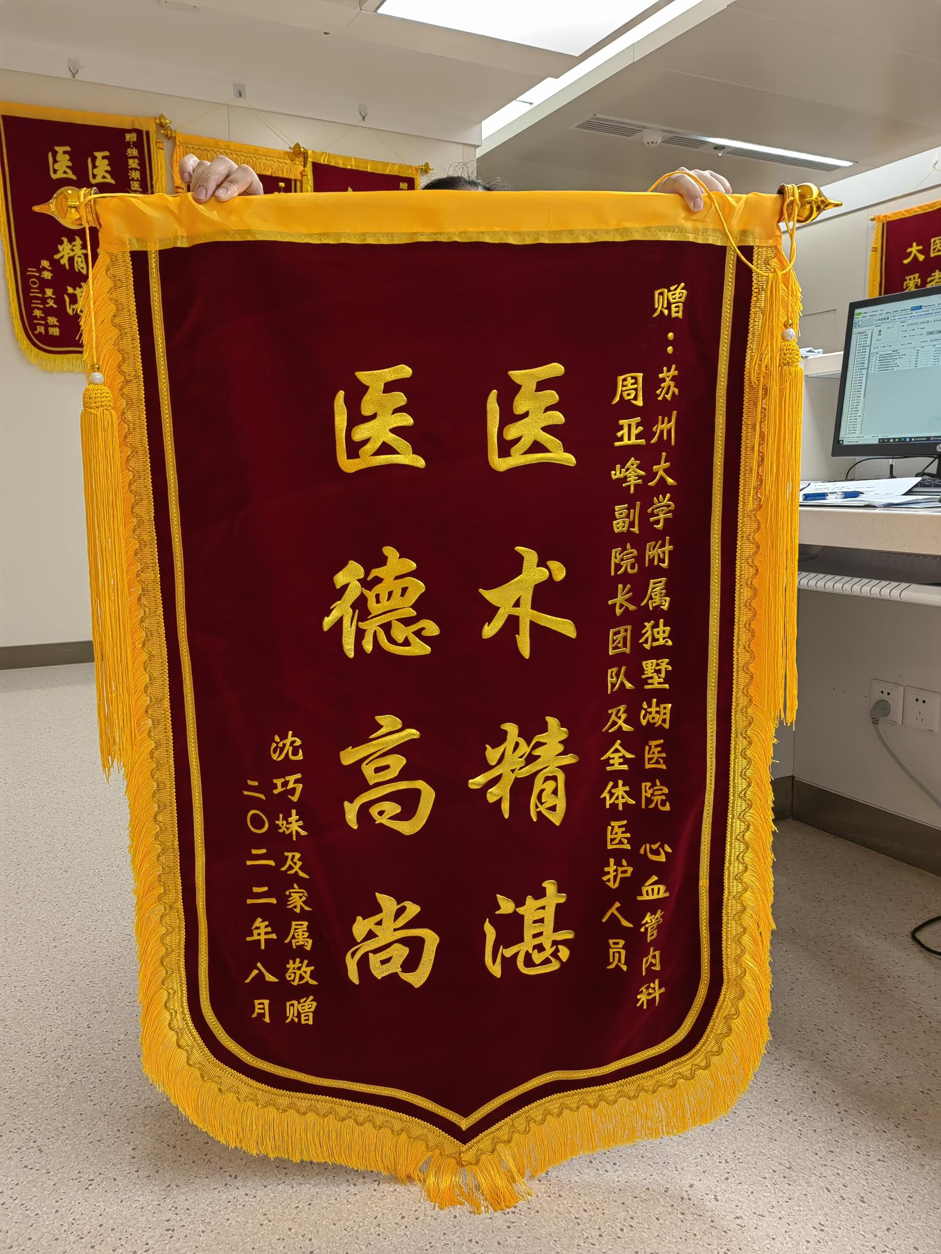患者沈女士赠送锦旗感谢我院心内科周亚峰副院长