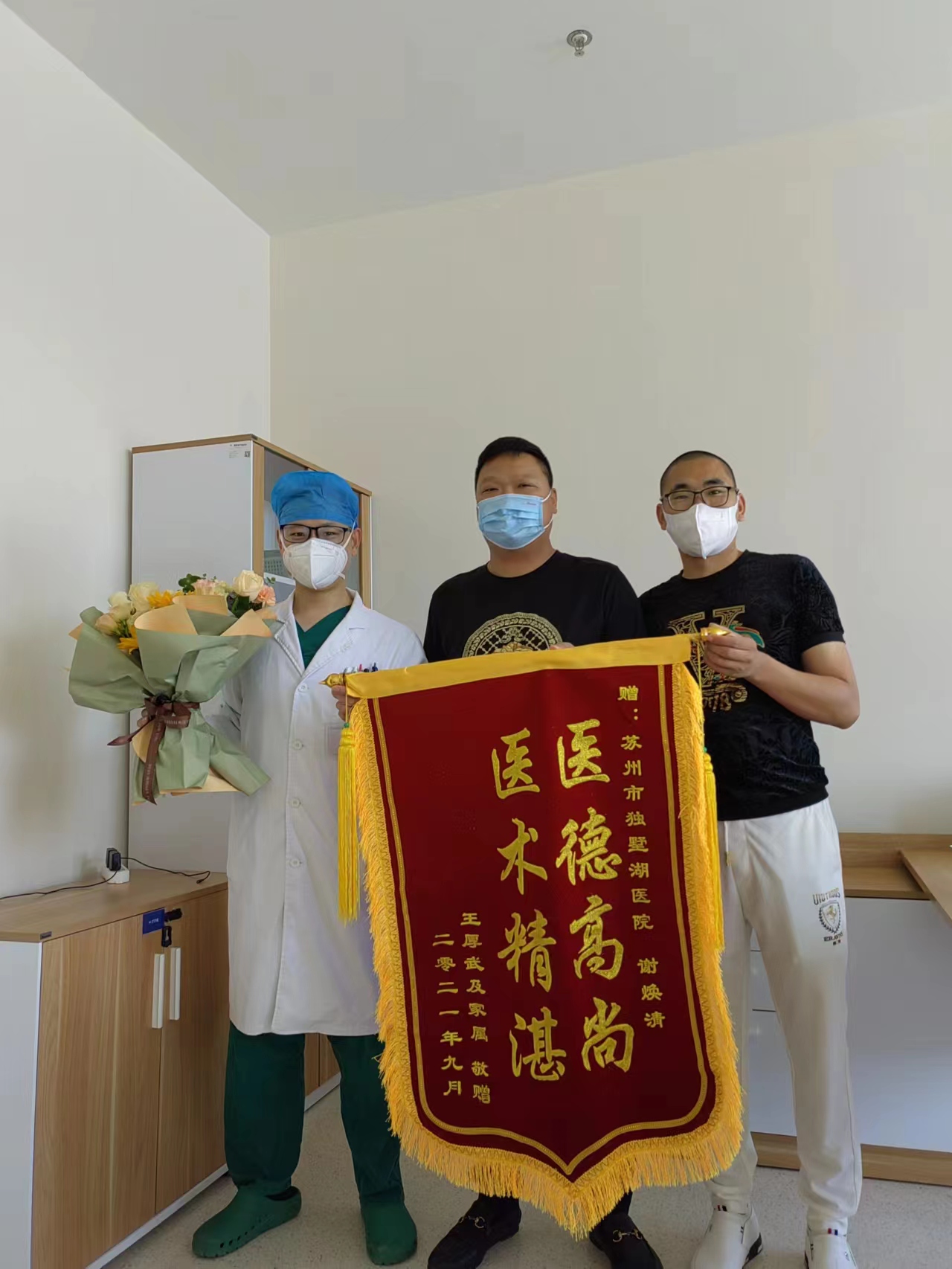 患者王先生及家属赠送锦旗感谢我院耳鼻咽喉科谢焕清医生