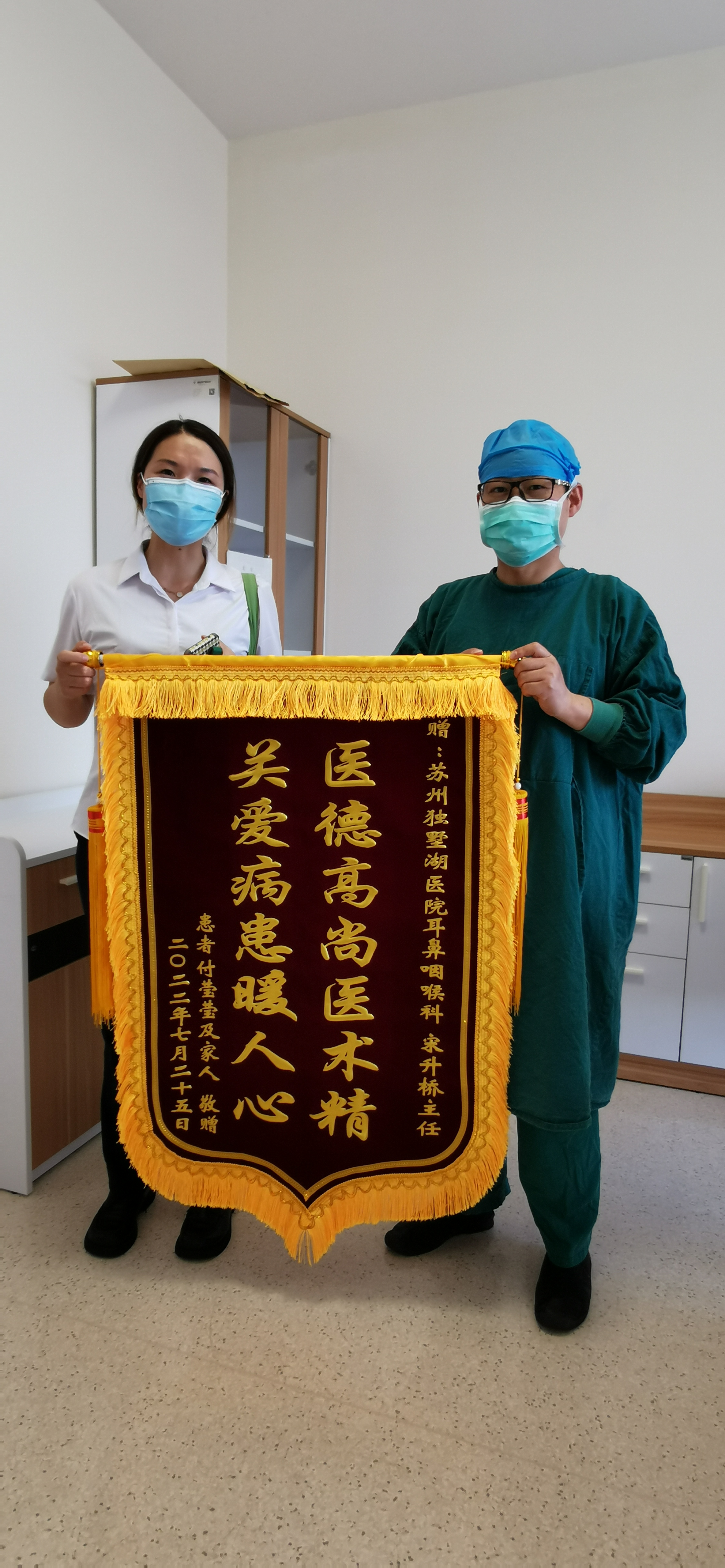 患者付女士赠送锦旗感谢我院耳鼻咽喉科宋升桥主任医师