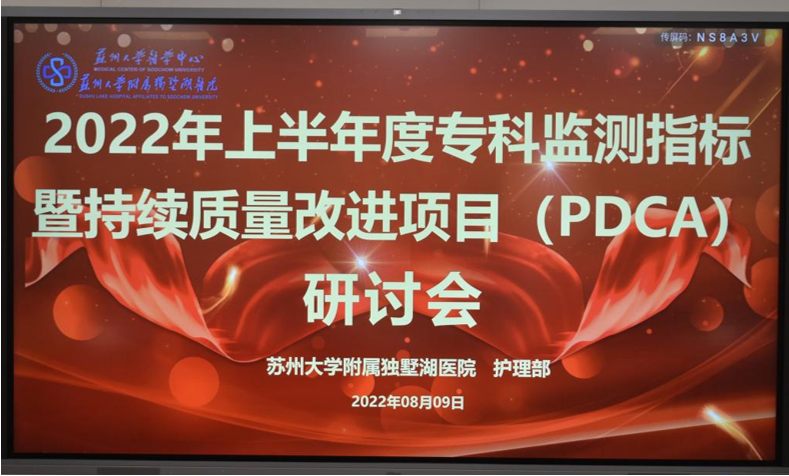 8月9日,苏州大学附属独墅湖医院护理部组织开展了2022年上半年度专科护理监测指标暨持续质量改进项目(PDCA)研讨会,会议由护理部王洁主任主持。本次会议旨在分享和展示护理持续质量改进成效,改善护理质量,提升护理内涵,鼓励护理创新。