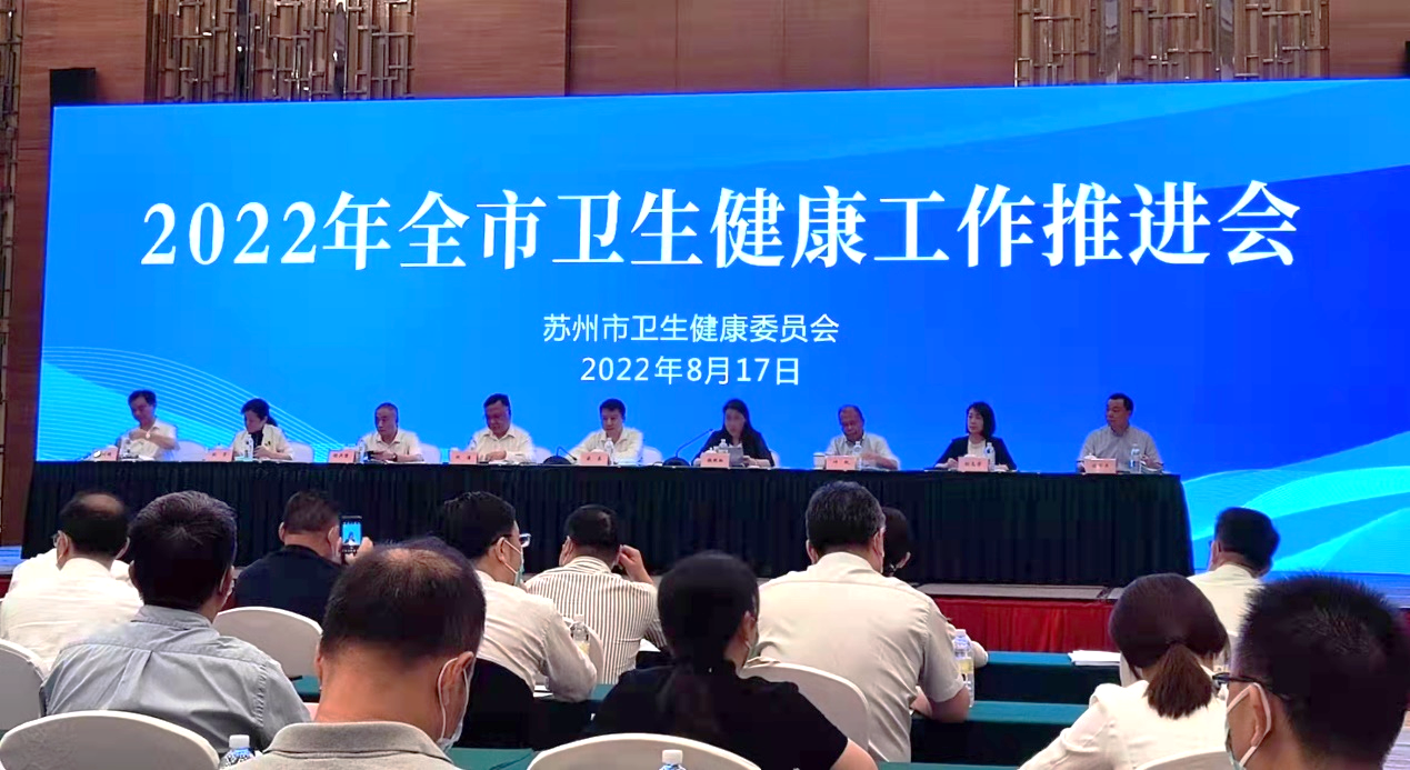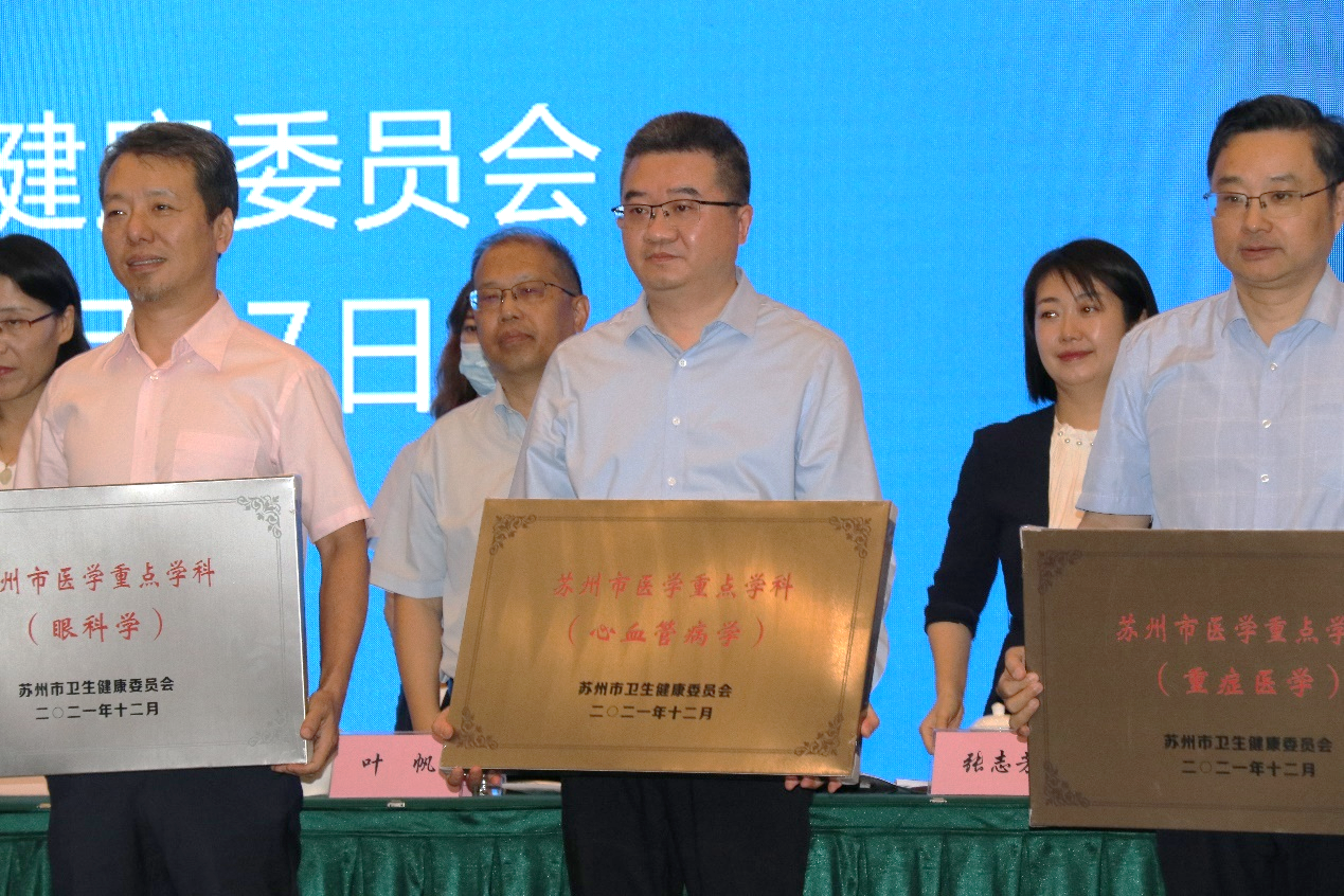 2022年苏州市卫生健康工作推进会于8月17日下午举办,市卫健委全体领导、委直属医疗机构、苏州大学各附属医院主要负责同志以及苏州市临床医学中心带头人、医学重点学科负责人等出席会议。会上,我院周亚峰副院长代表独墅湖医院心血管内科上台接受新一批苏州市医学重点学科的授牌。