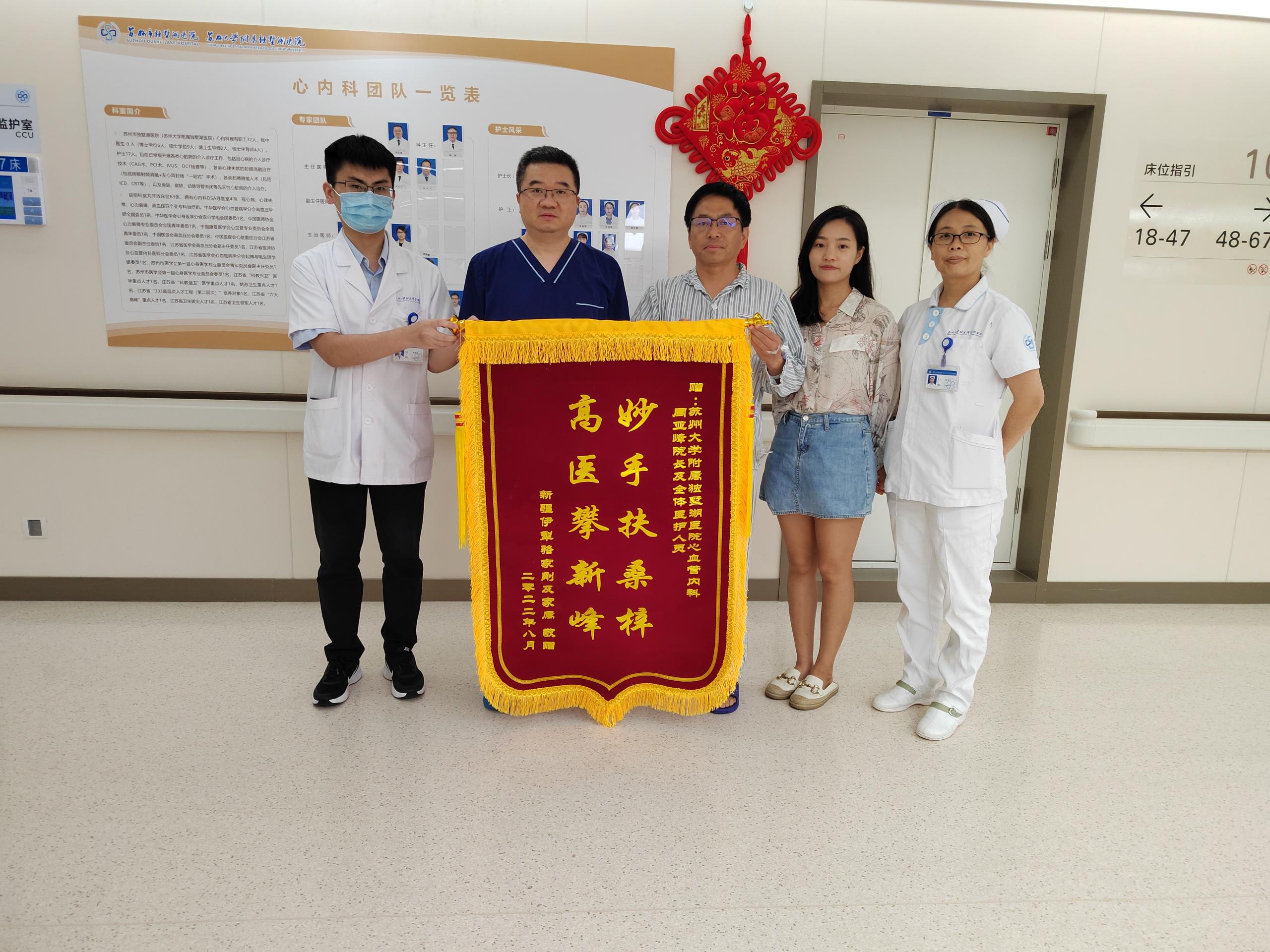患者骆先生及家属赠送锦旗感谢我院心内科周亚峰副院长及全体医护