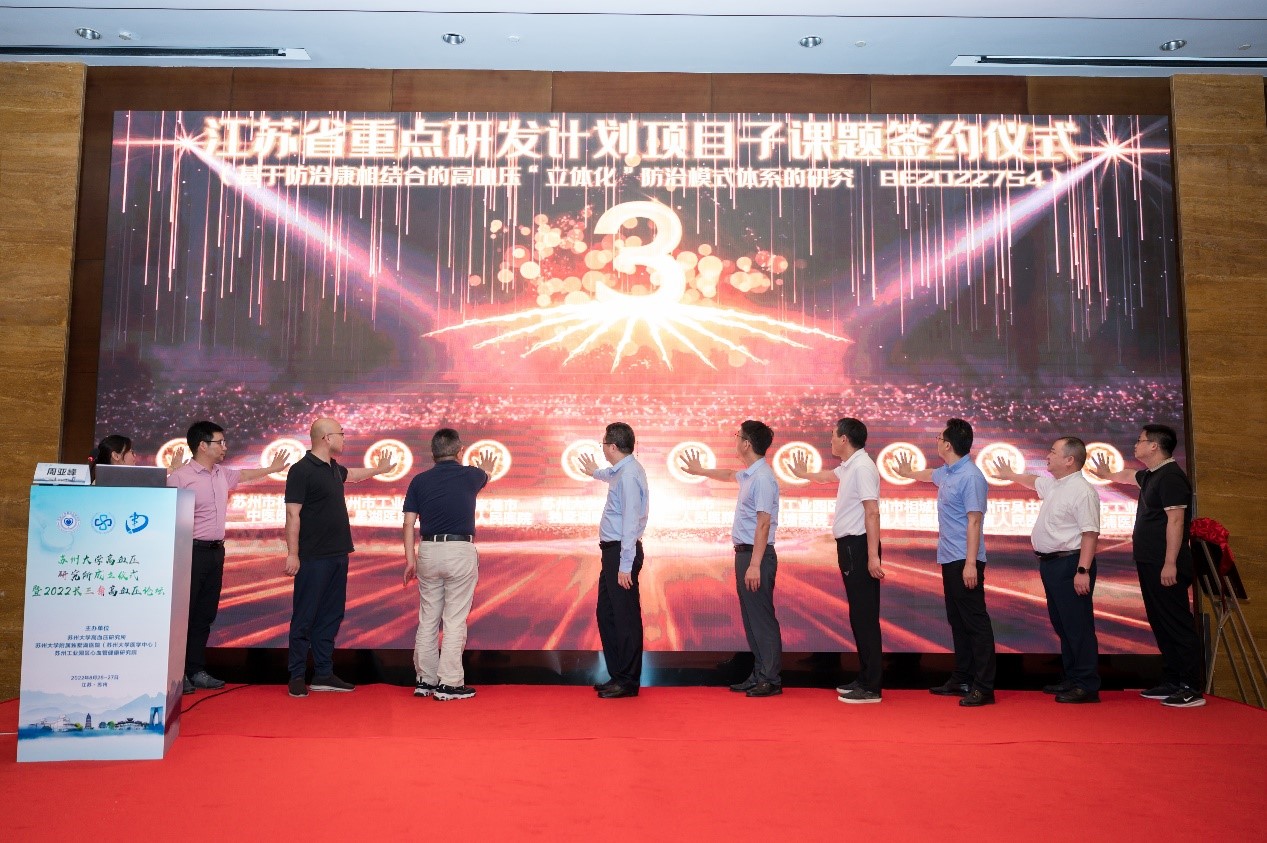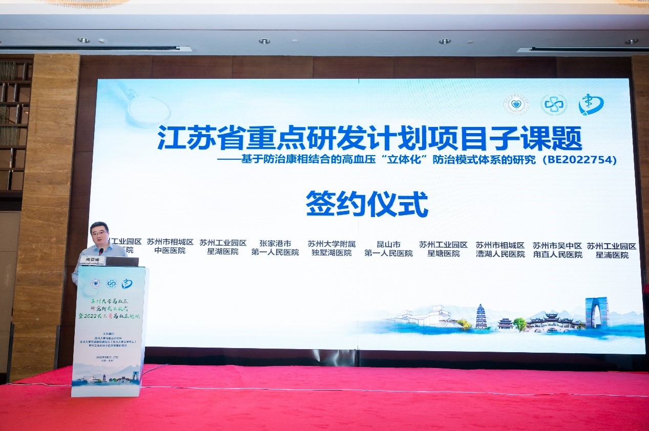 为推动苏州市高血压立体化防治体系建设,苏州大学附属独墅湖医院心血管内科周亚峰教授主持的江苏省重点研发计划项目——基于防治康相结合的高血压“立体化”防治模式体系的研究 BE2022754的子课题签约仪式于8月27日下午在苏州独墅湖畔举行。