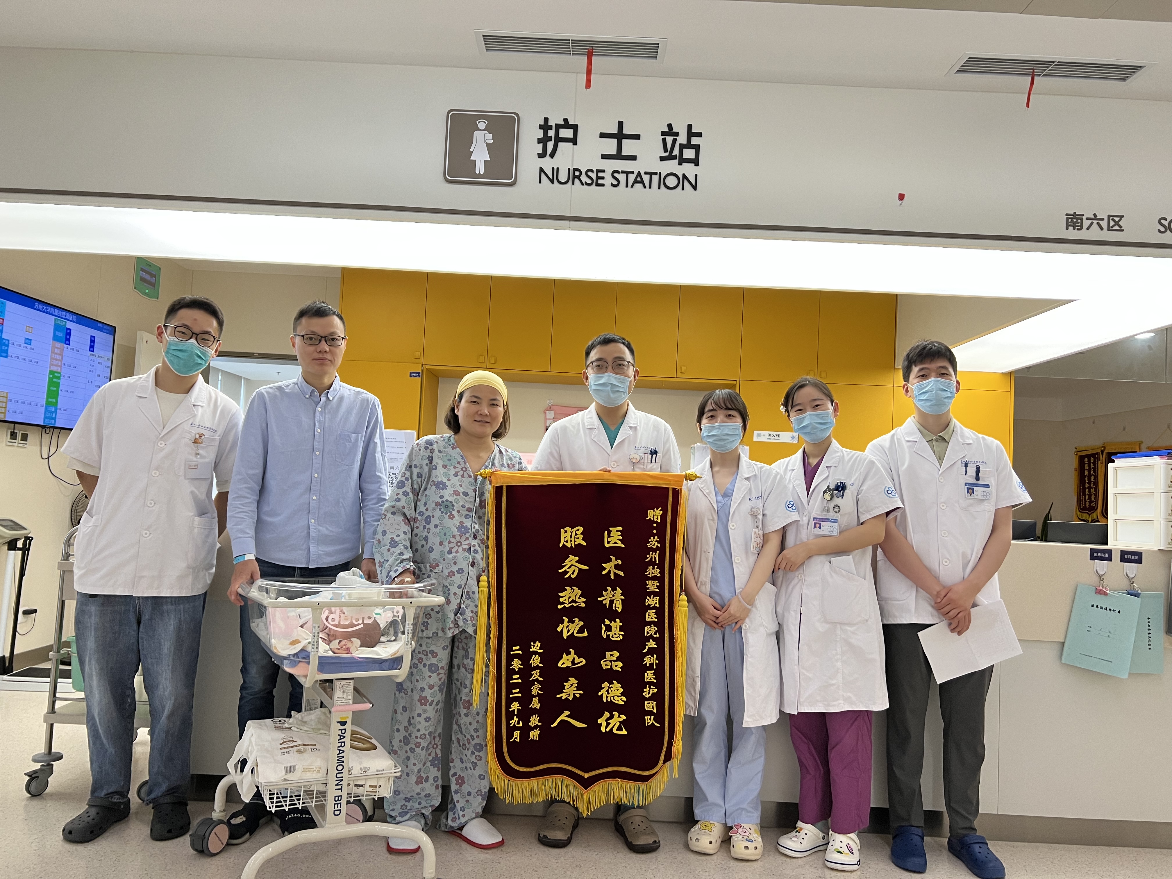 患者边先生及家属赠送锦旗感谢我院产科医护团队