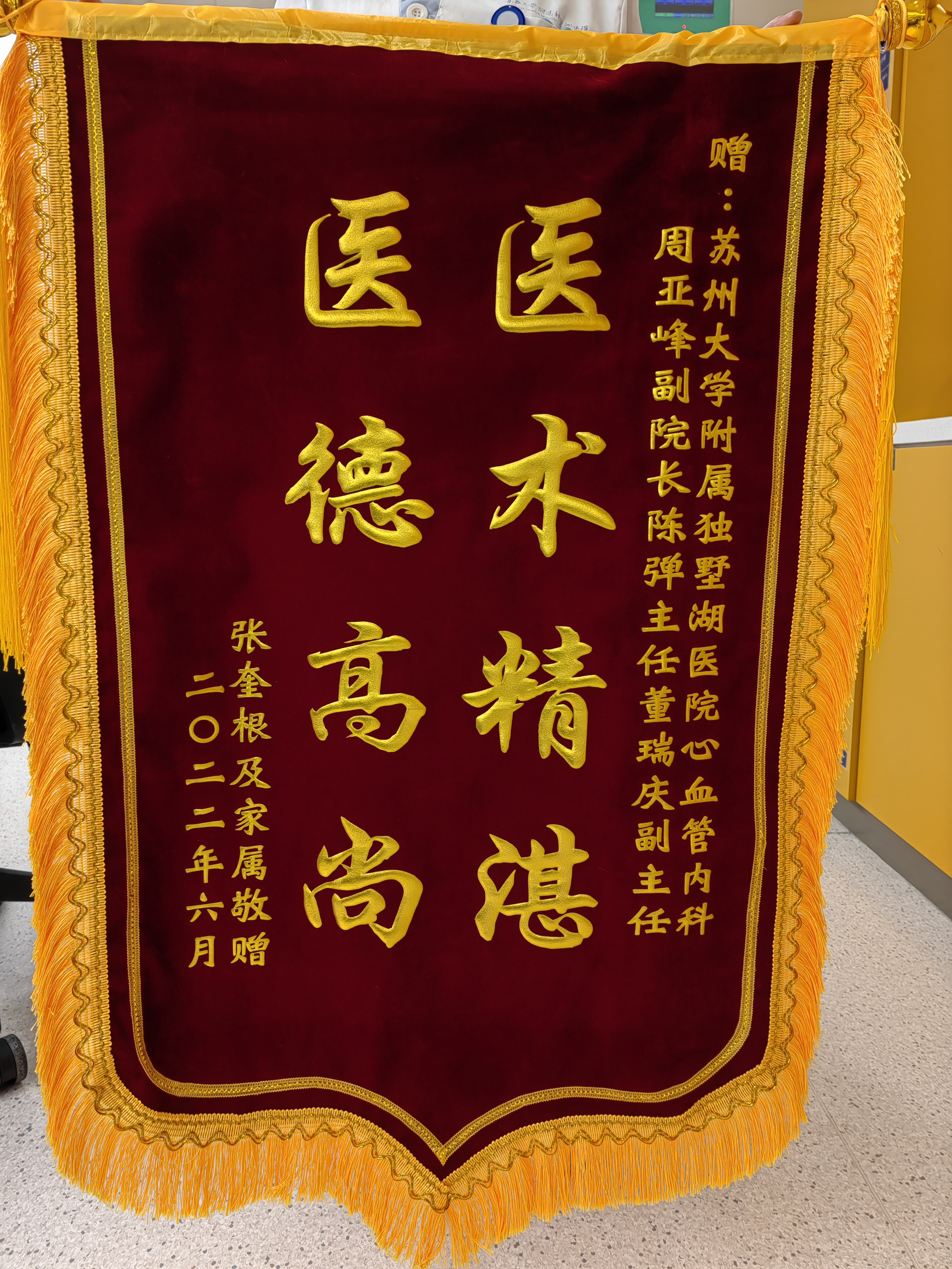 患者张先生及家属赠送锦旗感谢我院周亚峰副院长、心内科陈弹主任、董瑞庆副主任医师