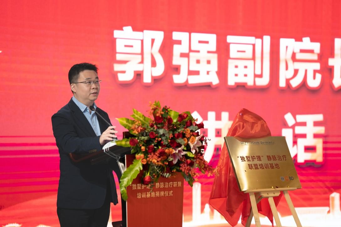郭强副院长首先对“独墅护理静脉治疗联盟培训基地”顺利揭牌表示热烈祝贺。他指出,独墅湖医院以“健康中国2030规划”作为行动纲领,深入贯彻二十大报告中“医疗卫生建设目标”以人民为中心的发展思想,在病有所医、弱有所扶上持续用力,致力于护理品牌和专科内涵建设。他表示,“独墅护理静脉治疗联盟培训基地”是一个新开始、新平台,希望通过医工合作,为园区及苏州各级医院培养更多“学研型”静脉治疗护理人才,推动区域化静脉治疗工作快速发展。