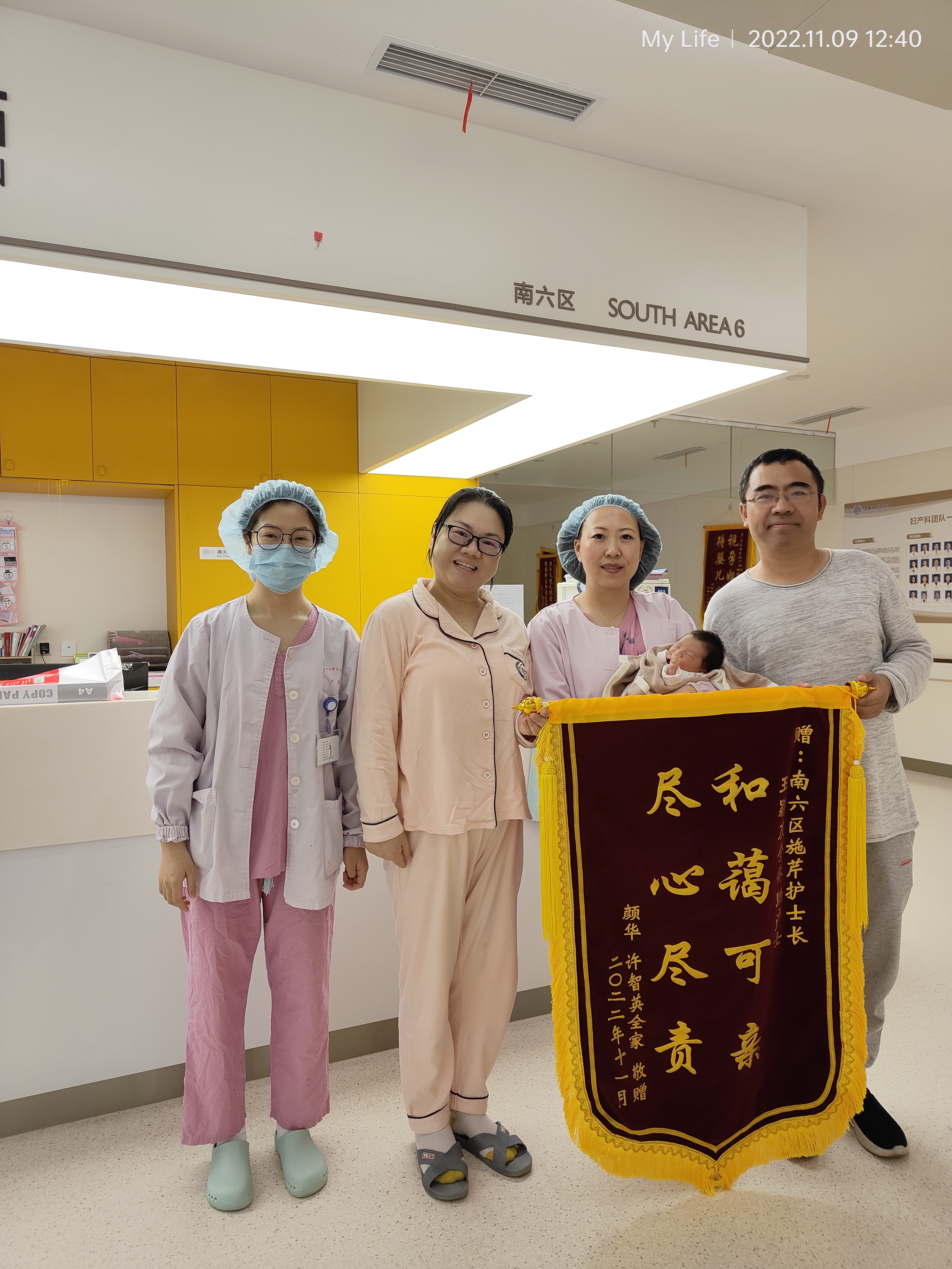患者许女士及家属赠送锦旗感谢我院妇产科施芹护士长