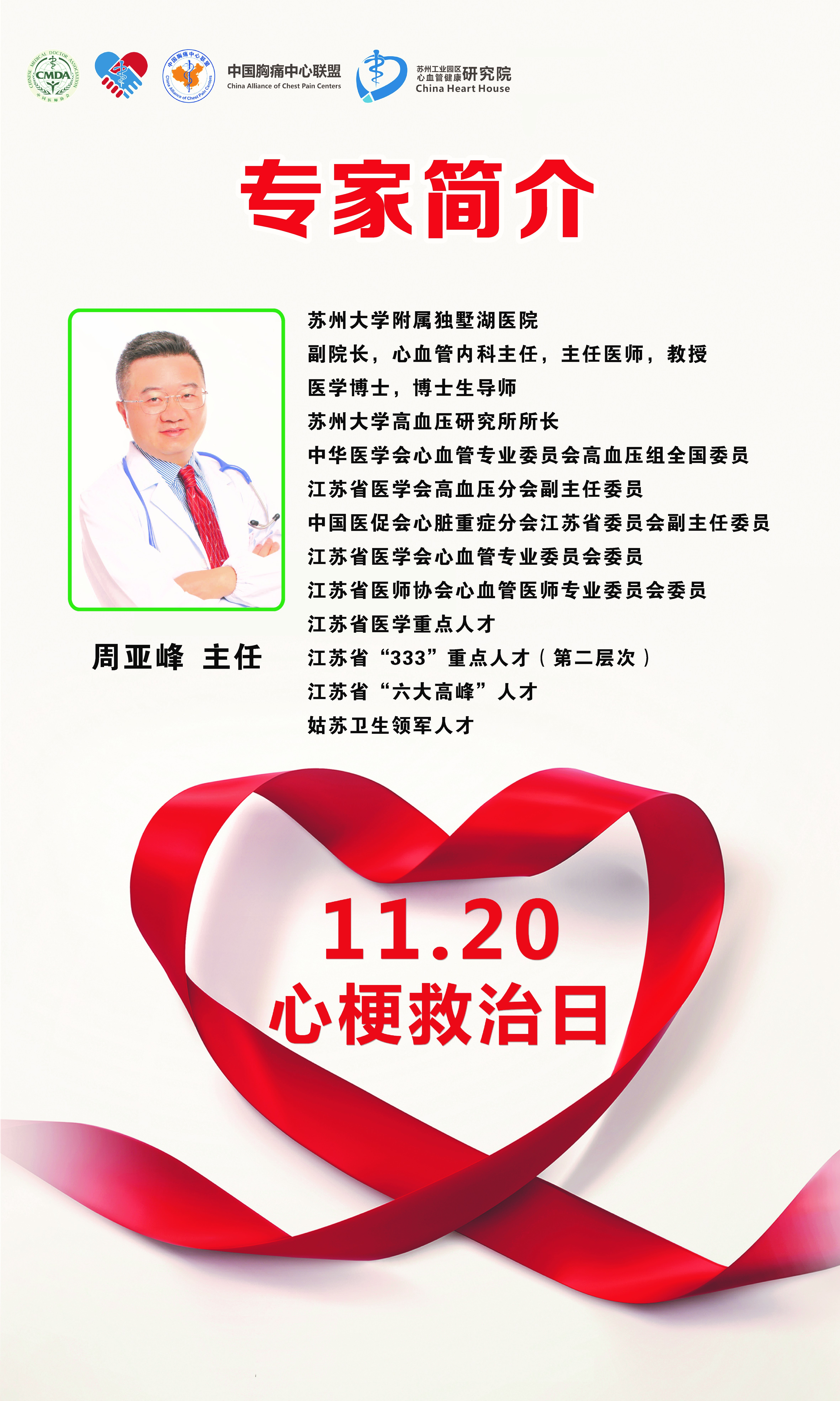 11月20日是“心梗救治日”。“1120”寓意有两个:一是“有胸痛,我要拨打120”;二是“心梗救治,争取黄金120分钟”。为提高公众防范意识,普及急性心梗规范化救治流程,让更多人重视心肌梗死救治的重要性,苏州大学附属独墅湖医院心血管内科拟于2022年11月18日举办“中国11.20心梗救治日”义诊活动。