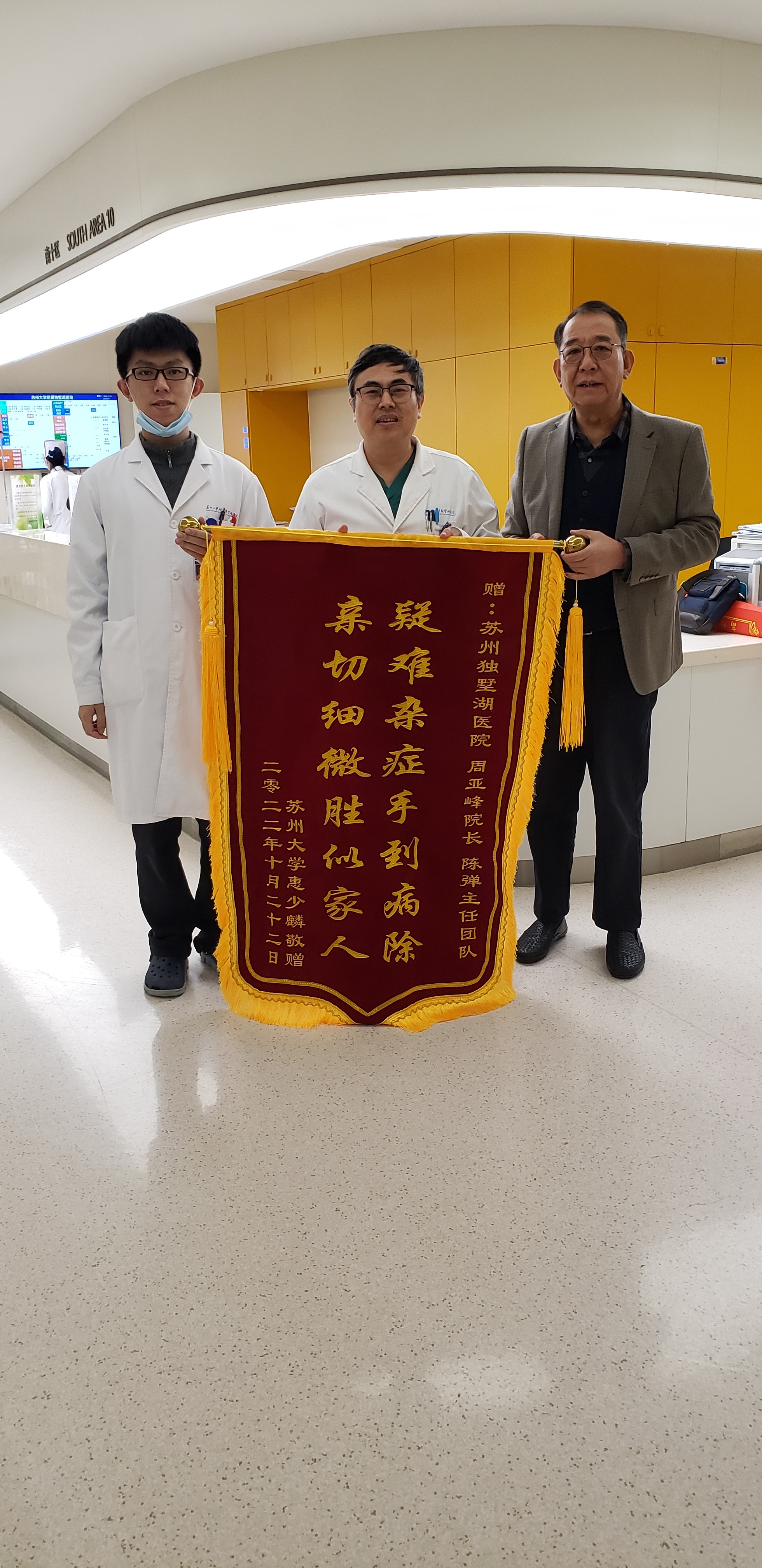 患者惠先生赠送锦旗感谢我院心内科周亚峰副院长、陈弹主任团队