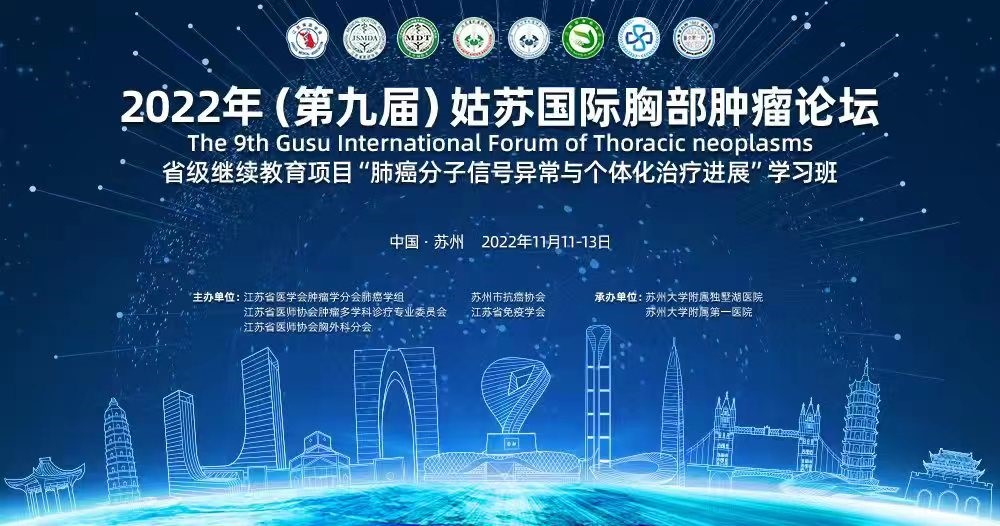 2022年11月11日-11月13日,由江苏省医学会肿瘤学分会肺癌学组、苏州市抗癌协会、江苏省医师协会肿瘤多学科诊疗专业委员会、江苏省免疫学会、江苏省医师协会胸外科分会联合主办,苏州大学附属独墅湖医院和苏州大学附属第一医院承办的“第九届姑苏国际胸部肿瘤论坛”举办。苏州大学附属独墅湖医院胸外科马海涛教授和肿瘤科陶敏教授担任本届论坛共同主席和主持。