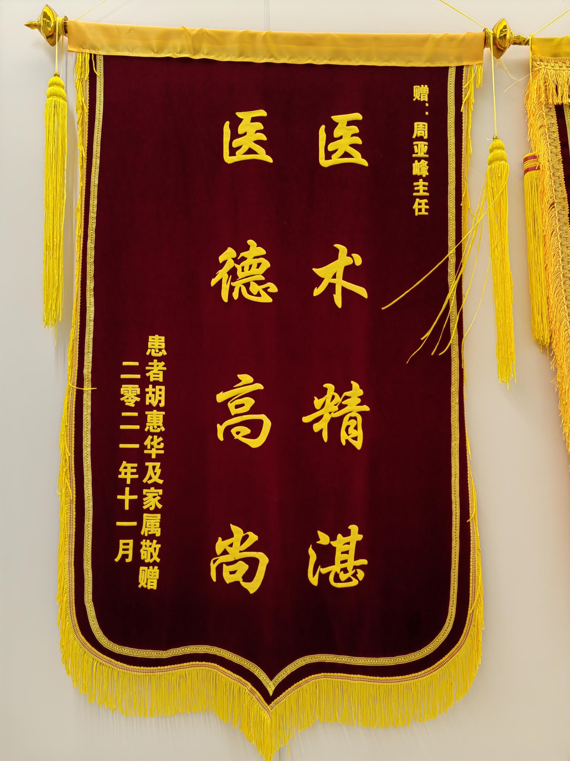患者胡女士赠送锦旗感谢我院周亚峰副院长