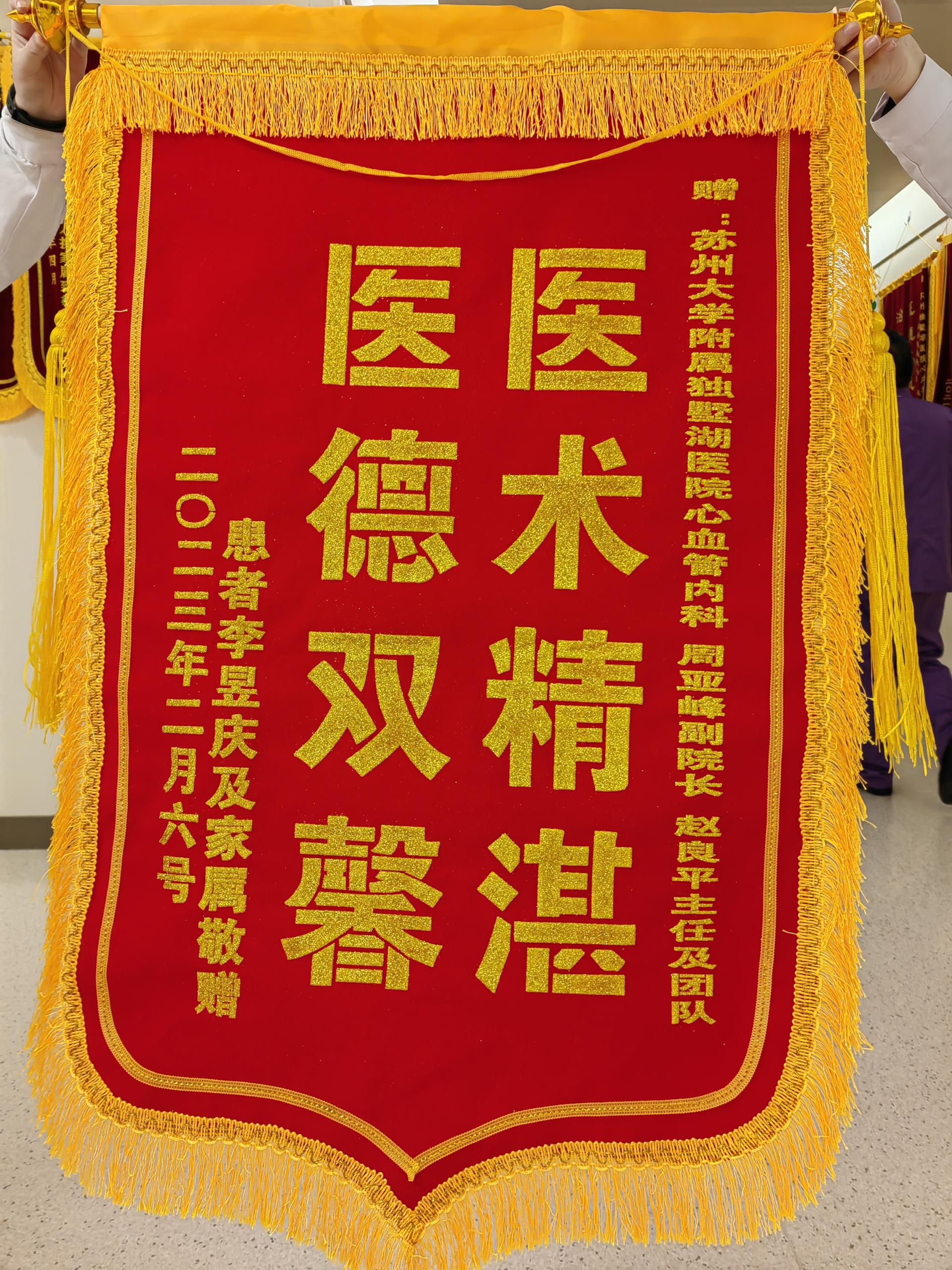 患者李先生及家属赠送锦旗感谢我院周亚峰副院长、心内科赵良平主任副医师及其团队