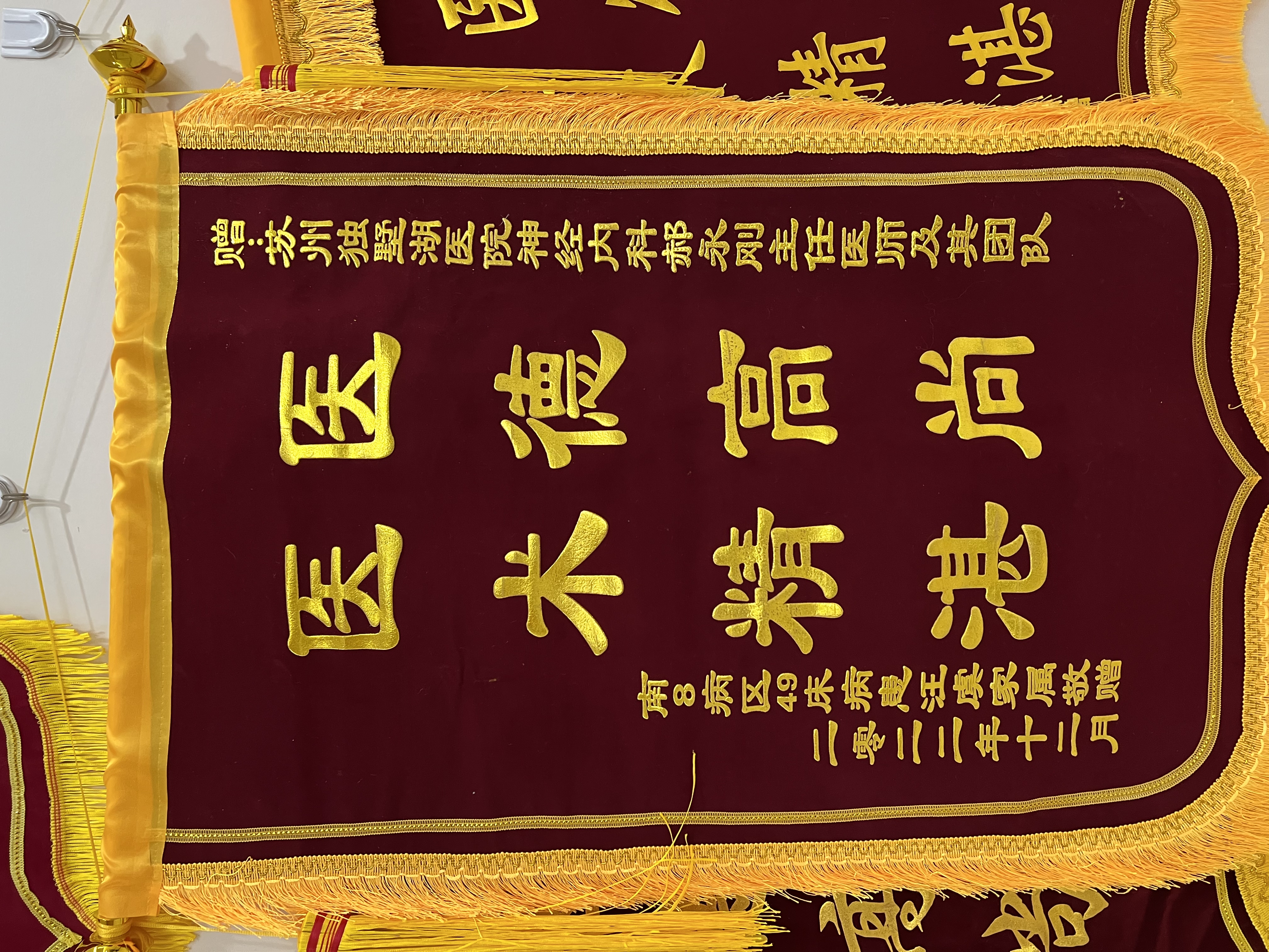 患者汪先生及家属赠送锦旗感谢我院神经内科郝永岗副主任