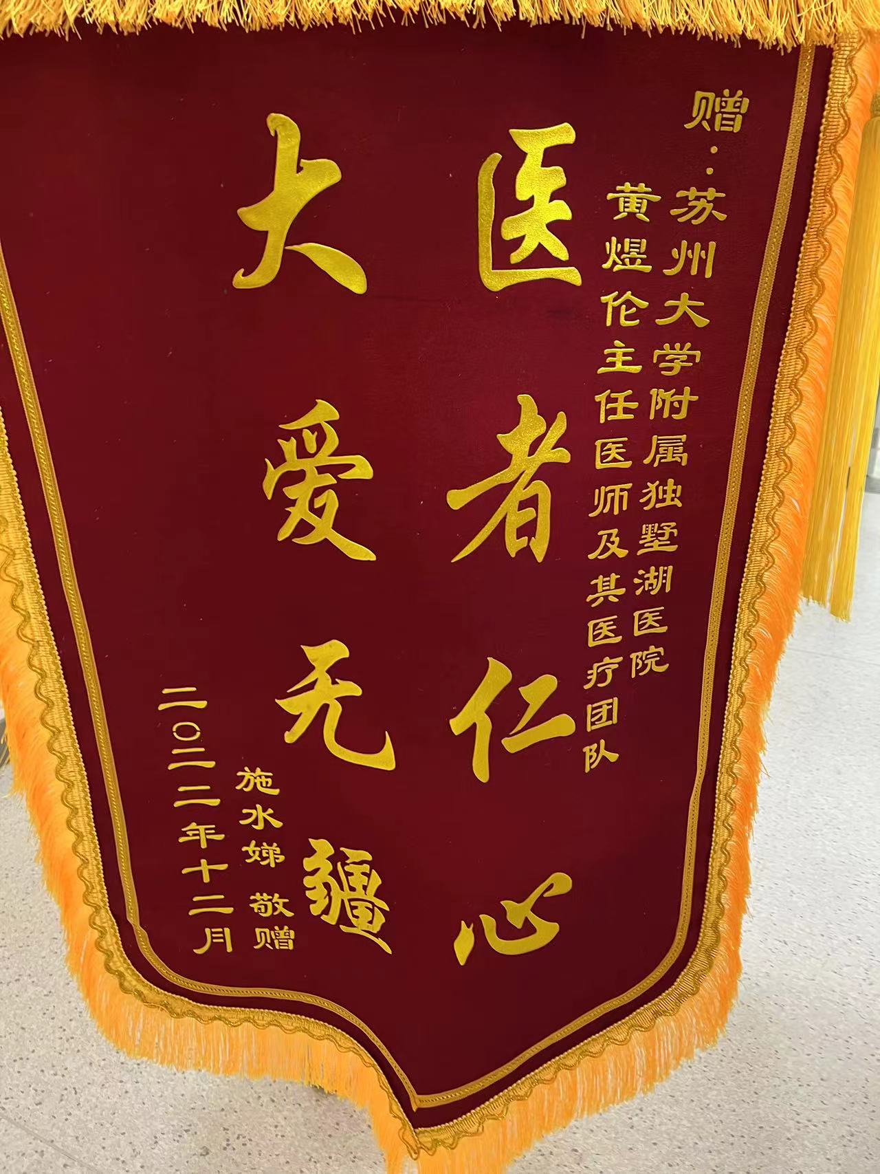 患者施女士赠送锦旗感谢我院神经外科黄煜伦主任及其团队