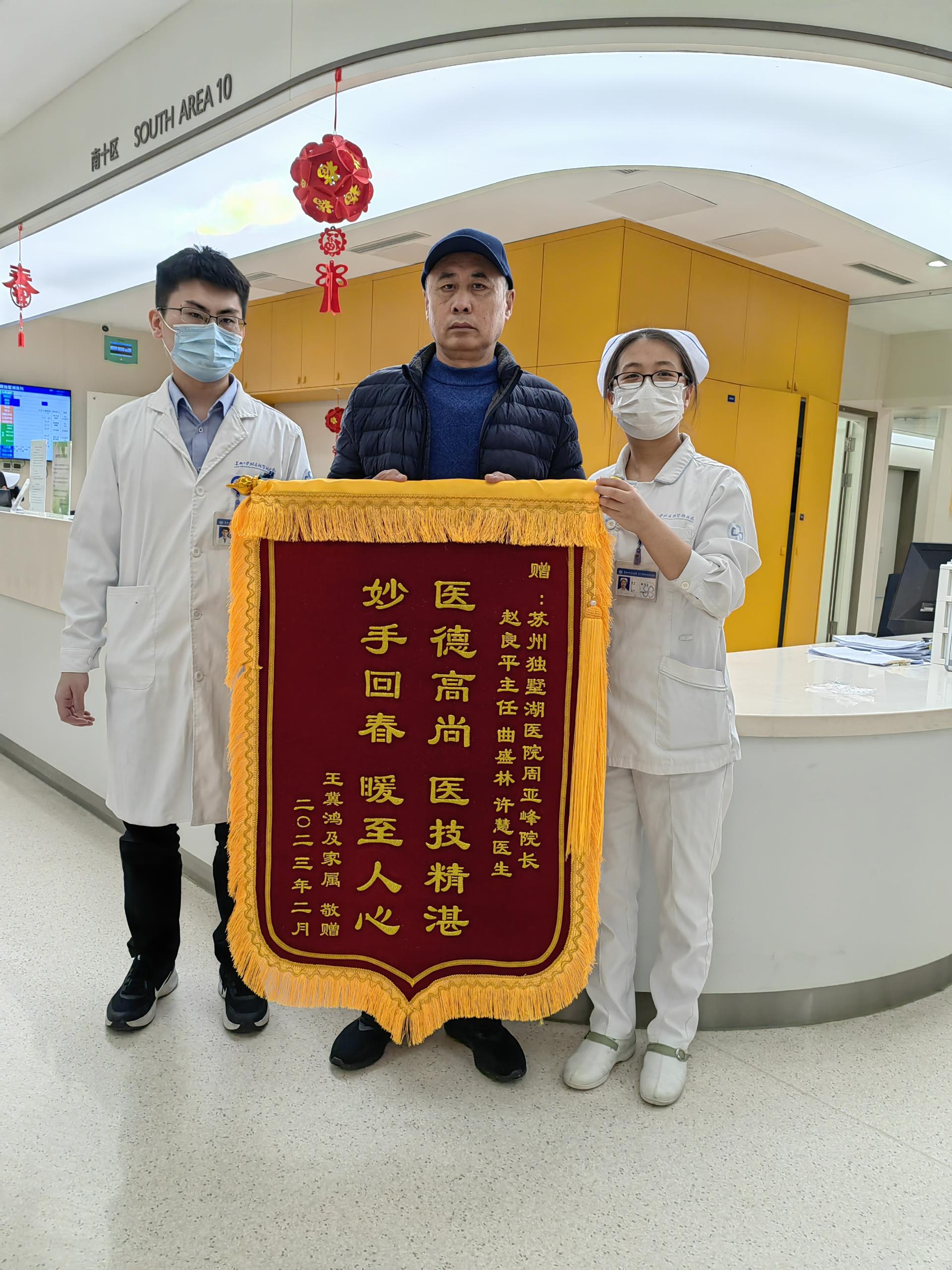 患者王先生赠送锦旗感谢我院周亚峰副院长、心内科赵良平副主任医师、曲盛林、许慧医生