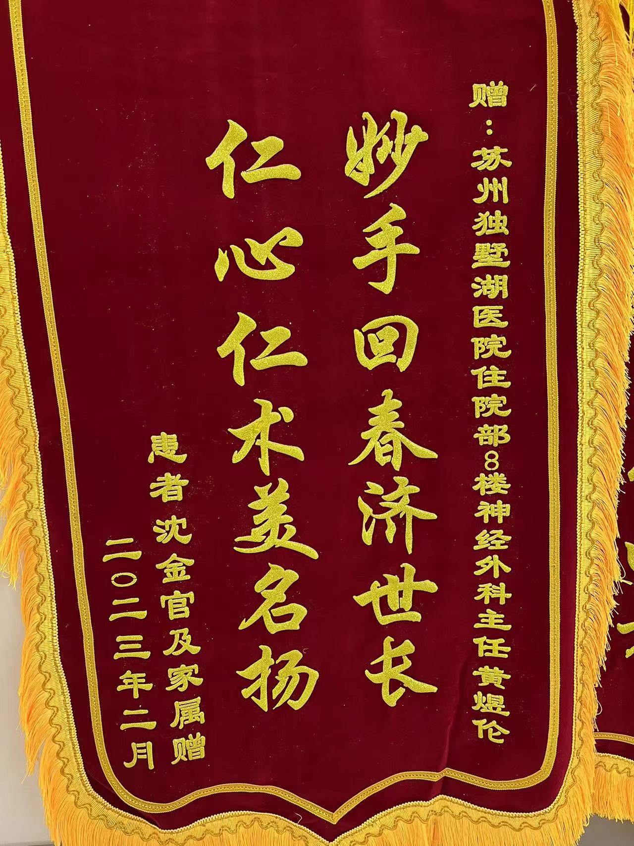 患者沈先生赠送锦旗感谢我院神经外科黄煜伦主任