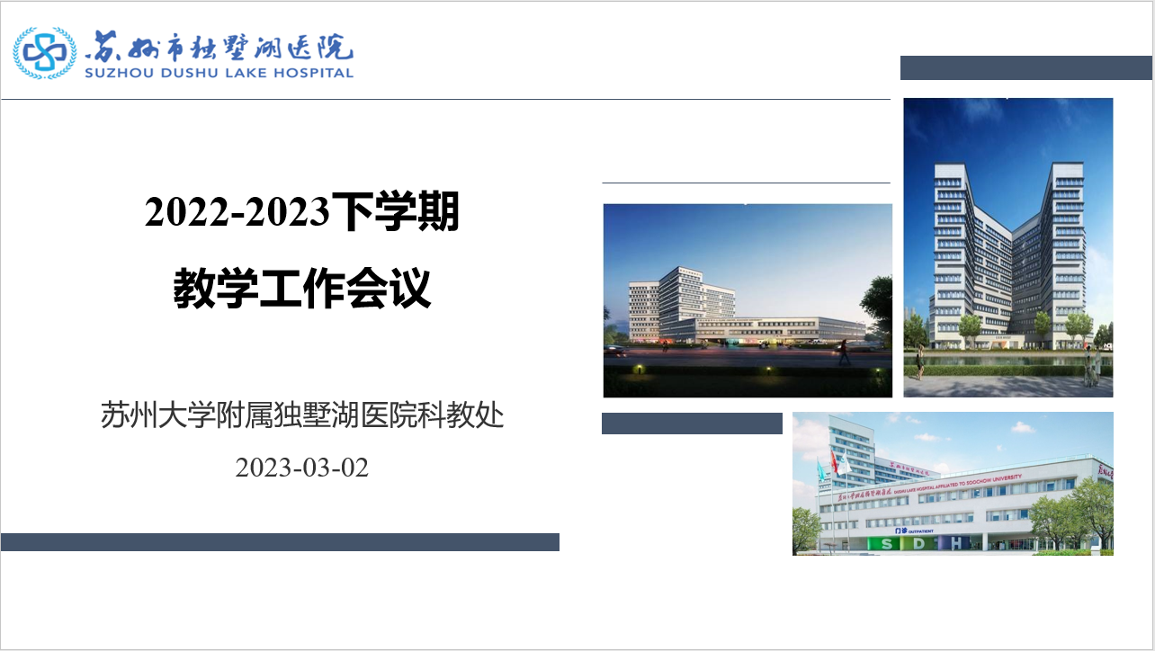 新学期伊始,独墅湖医院作为苏州大学附属医院,本学期开始承担本科生授课工作。为明确教学相关规章制度,保证本科生教学质量,3月2日下午科教处组织了2022-2023年下学期教学工作会议,我院副院长周亚峰、科教处江淼处长、仝瑞青副处长、承担教学工作的本院专家及各科室的教学秘书参加了本次工作会议。