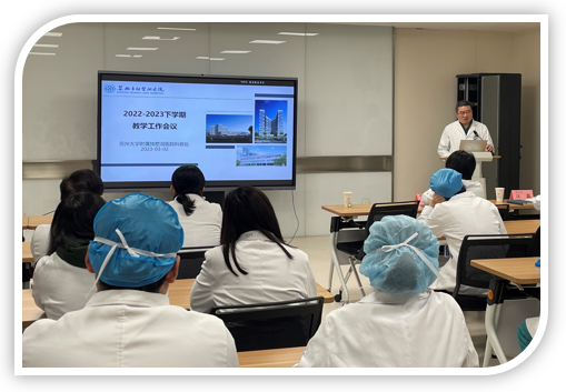 周亚峰副院长首先对承担教学任务的本院职工表示认可,希望各位在繁忙的临床工作和专业授课的工作中找到平衡,力争在苏州大学的本科生教育工作中做出特色,不断提高授课品质。