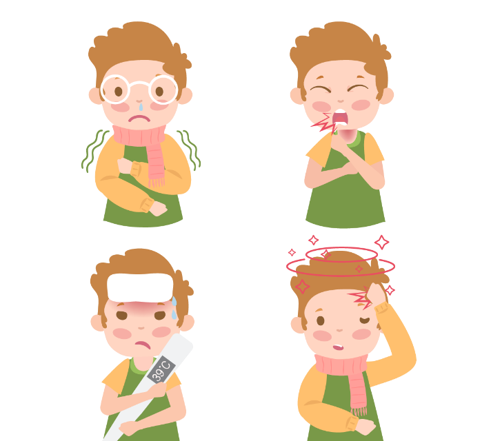 儿童流感多突然起病,主要症状为发热,部分患儿体温可达39~40 ℃,可有畏寒、寒战,全身症状较重,表现为头痛、全身肌肉酸痛、乏力、食欲减退等;经常伴有咳嗽、咽痛、鼻塞、流涕等,少部分出现恶心、呕吐、腹泻。