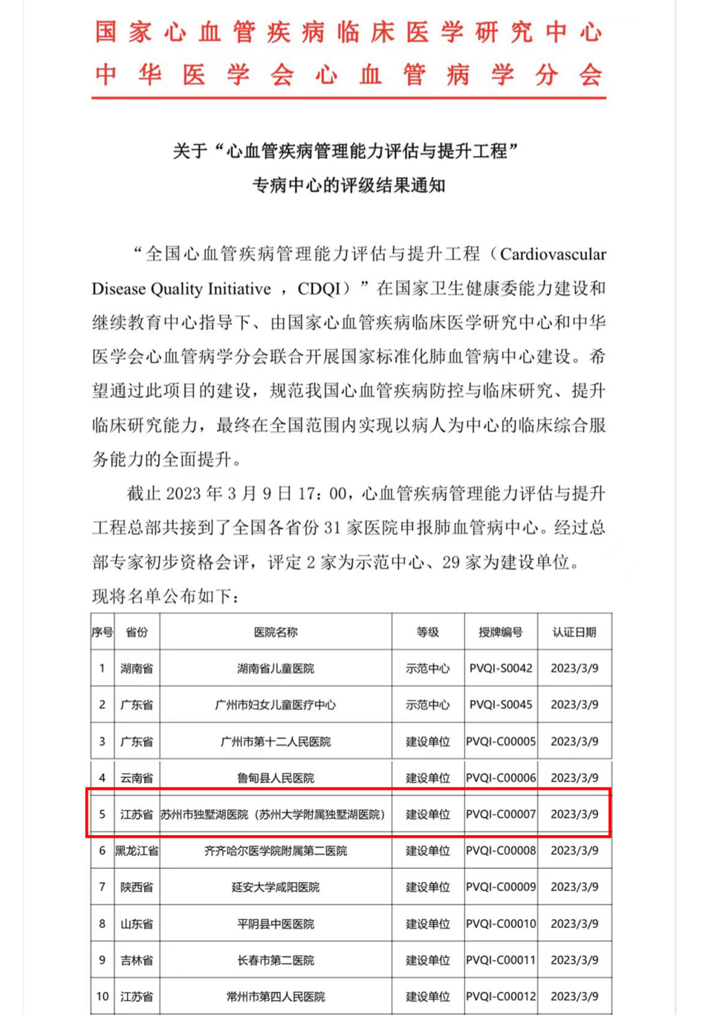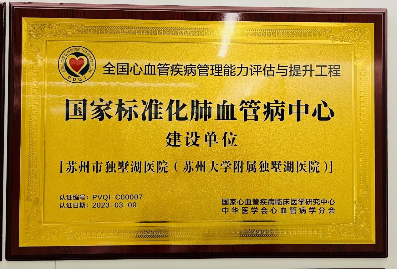 此次我院被评为CDQI国家标准化肺血管病建设单位对医院的高质量发展具有里程碑意义,独墅湖医院心内科团队将立足苏州大学医学中心这一平台,为区域及苏州市肺血管病诊疗水平的提高积极贡献自己的一份力量。