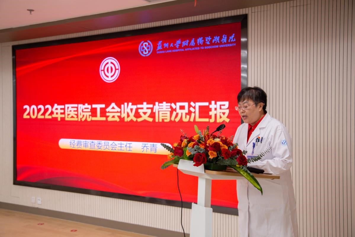 工会经费审查委员会主任、肾内科主任乔青从工会经费总体管理、经费收缴情况及经费使用情况向大会做《苏州市独墅湖医院2022年工会收支报告》。2023年,工会财务将进一步加强预算管理,不断调整和优化支出结构,收好、管好、用好经费,为工会开展好各项职工活动奠定坚实基础。