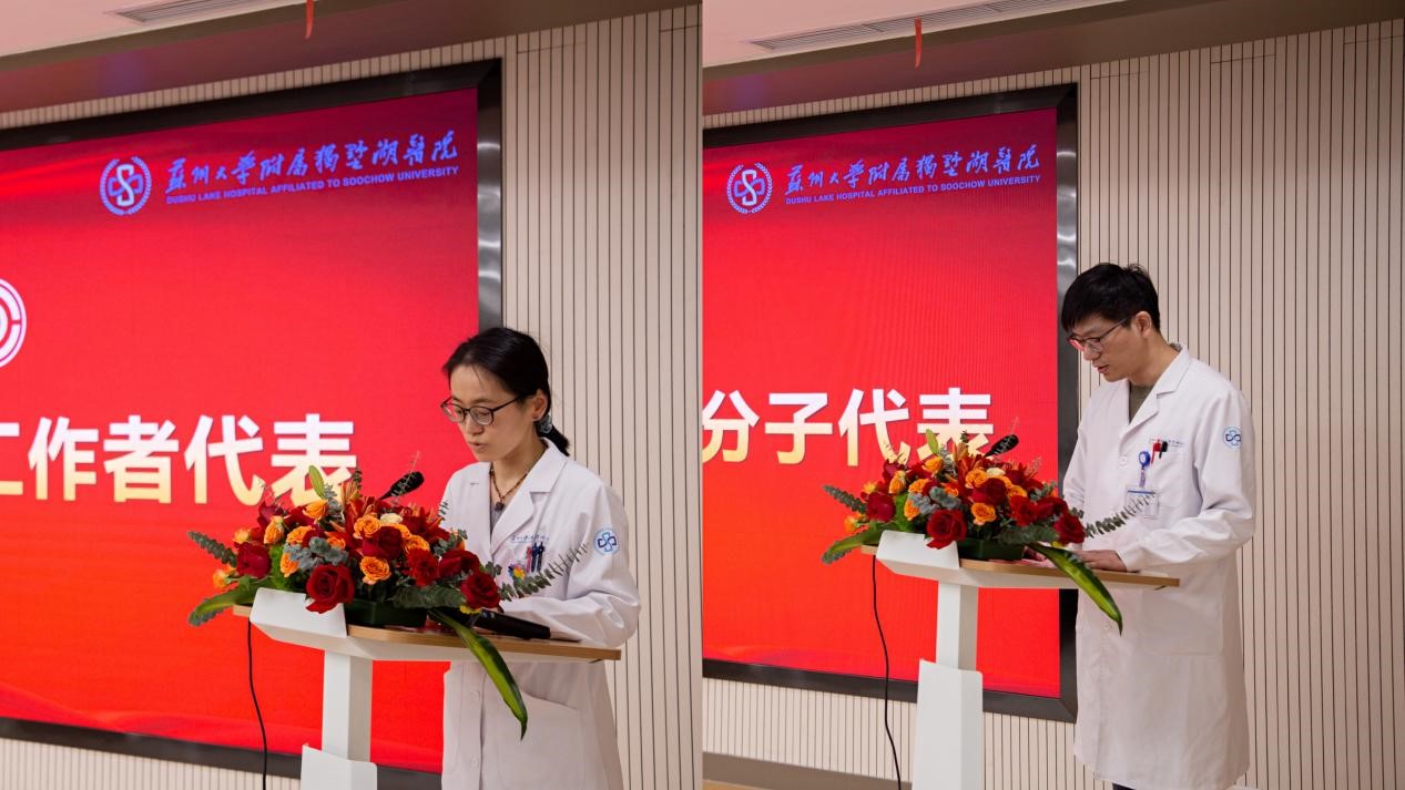 会上,对在工会工作中表现突出的10名优秀工会工作者和10名优秀工会积极分子进行了表彰。工会副主席、护理部主任王洁宣读《关于表彰2022年度优秀工会工作者和优秀工会积极分子的决定》。党政办公室颜骁慧和骨科蒋伟刚分别代表优秀工会工作者和优秀工会积极分子做交流发言。