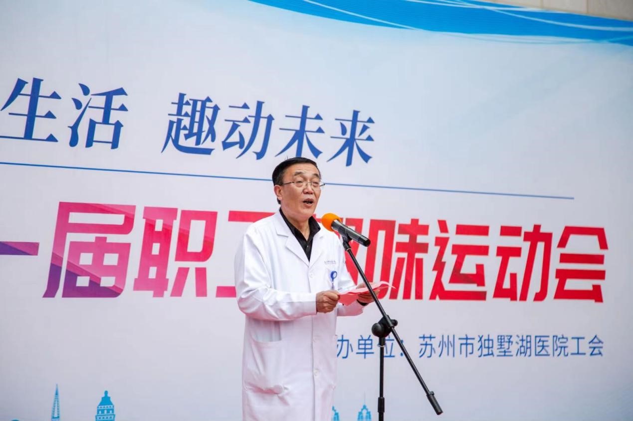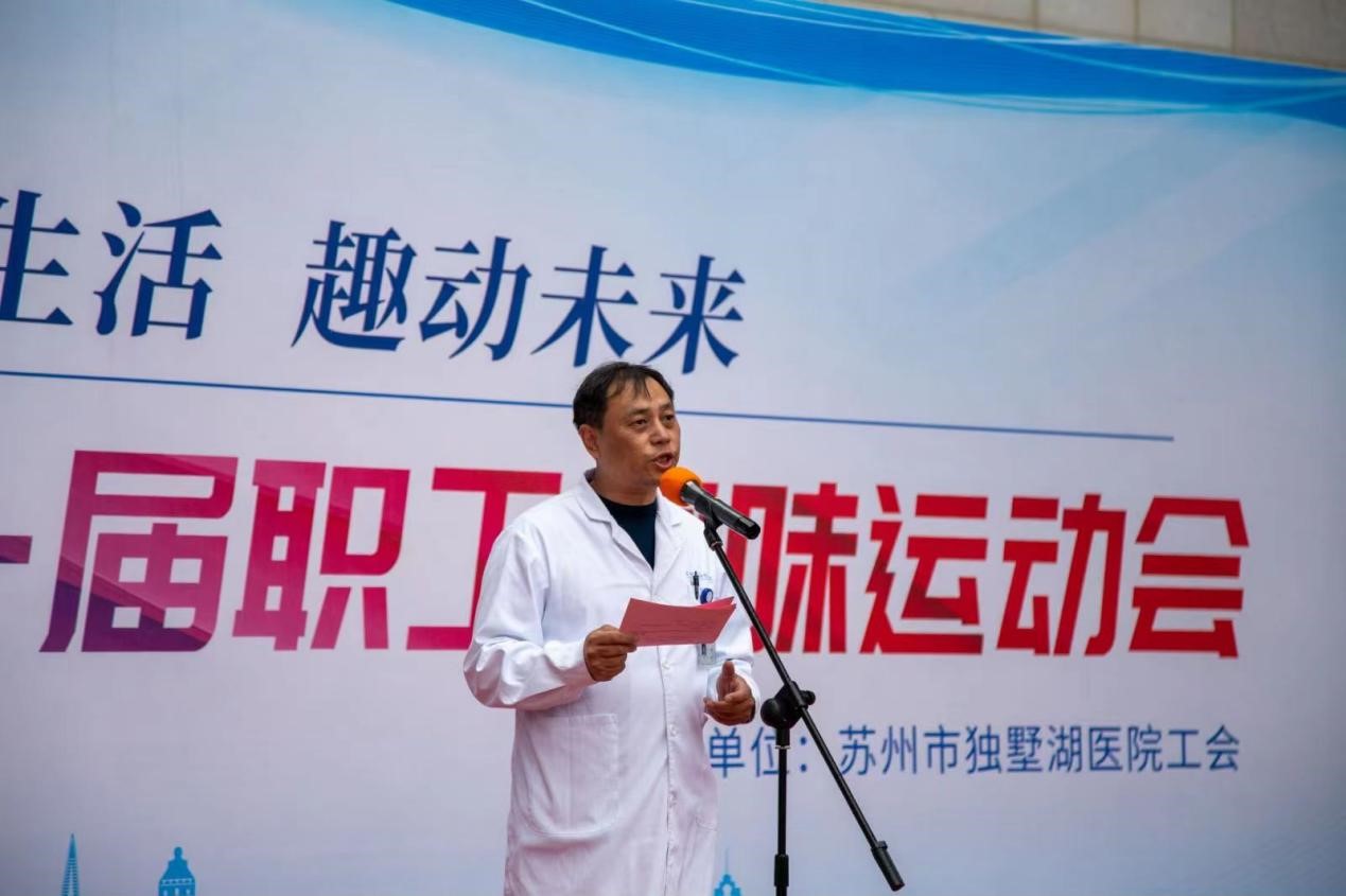 3月24日下午,苏州大学附属独墅湖医院“乐享生活、趣动未来”首届职工趣味运动会在住院部西侧广场隆重举行。医院党委书记侯建全,党委副书记、院长方琪,党委副书记、工会主席郭秀娟出席了运动会开幕,各部门分工会主席及一百多名职工参加了本届运动会。运动会开幕由院长助理、工会副主席于荣俊主持。