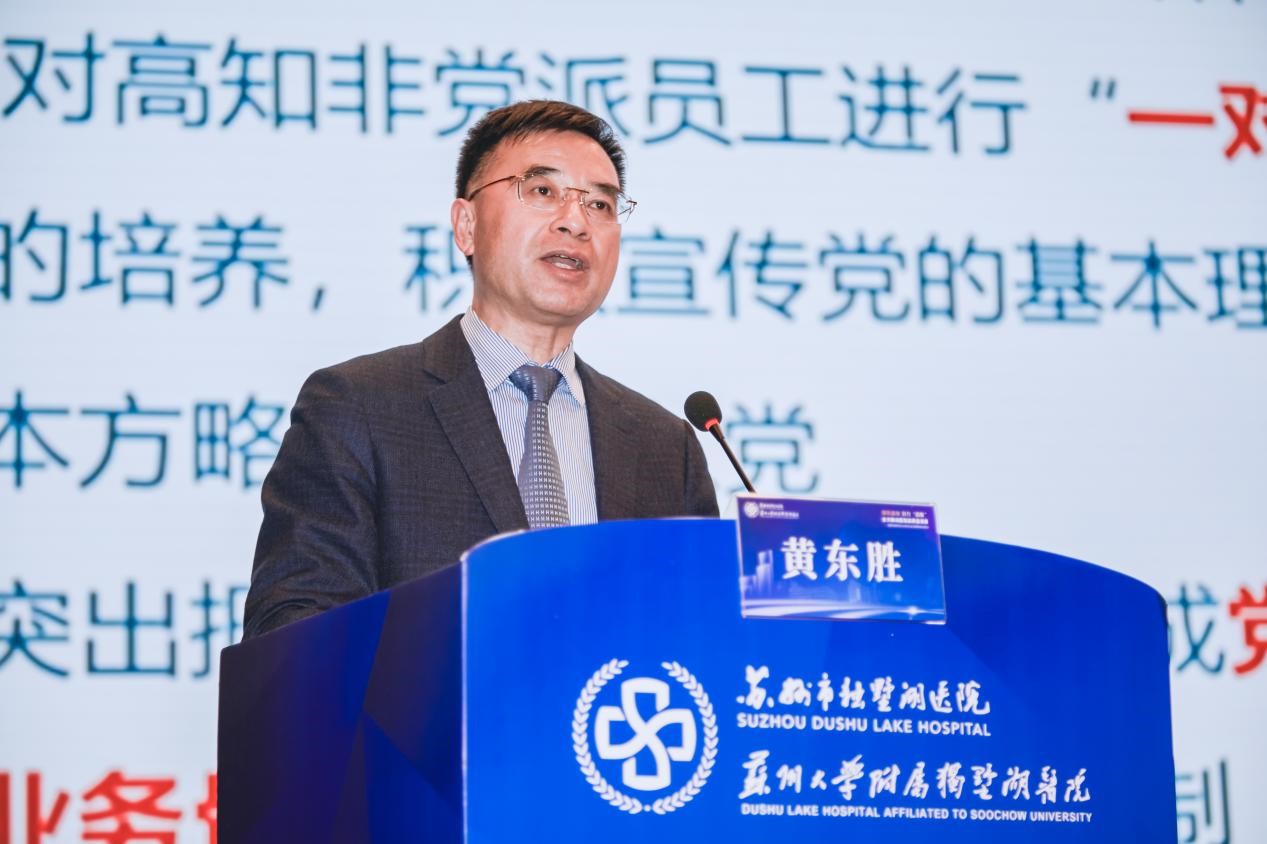 下午的会议中,黄东胜教授以《党建引领 文化铸魂——促进医院高质量发展》为主题开展培训。他深入浅出地解读分析党委领导下的院长负责制,通过激活基层党组织的活力、发挥党支部的战斗堡垒作用、加强党员队伍建设、打造党政配合新常态等途径推动党建和业务的深度融合。同时,要注重医院文化的灵魂和引领作用,围绕患者和员工的真实需求提供优质服务,建设患者和员工双满意的“家文化”医院。