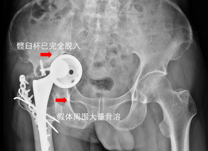 就在一筹莫展之际,一位在我院治好了关节疾病的亲戚建议黄老先生来苏州看看,于是决定来到我院骨科就诊。我院骨科林俊主任医师在查看影像资料后发现,患者髋臼侧假体已完全移位并部分脱入盆腔,唯有翻修手术才能让患者再次站起来。患者入院后在骨科姜为民主任带领下,全科上下极为重视。在完成了全部检查后,姜主任多次组织全科疑难病例讨论,详细分析病情,群策群力,针对各种可能的情况制定相应的对策。