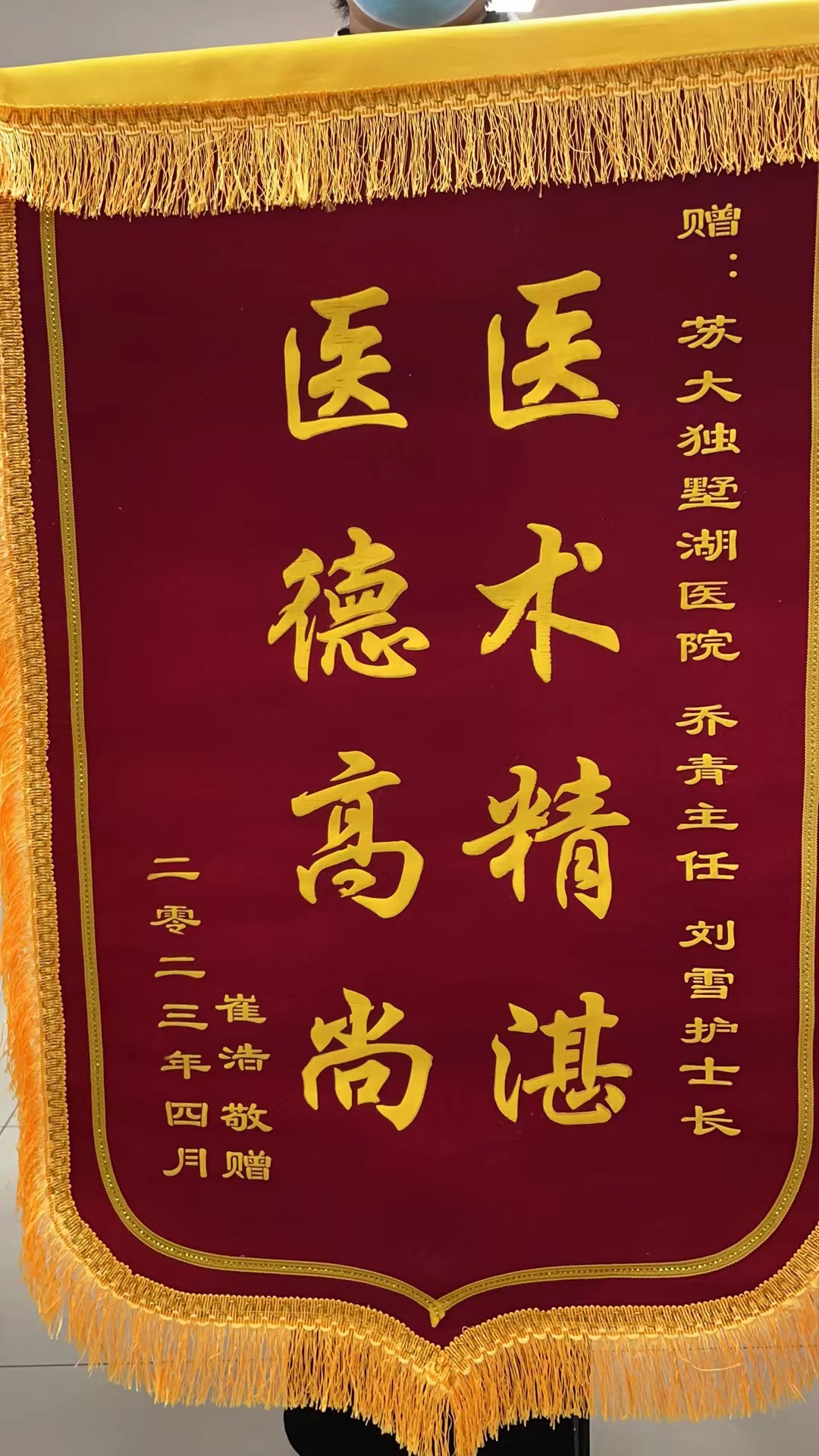 患者崔先生赠送锦旗感谢我院肾内科乔青主任、刘雪护士长